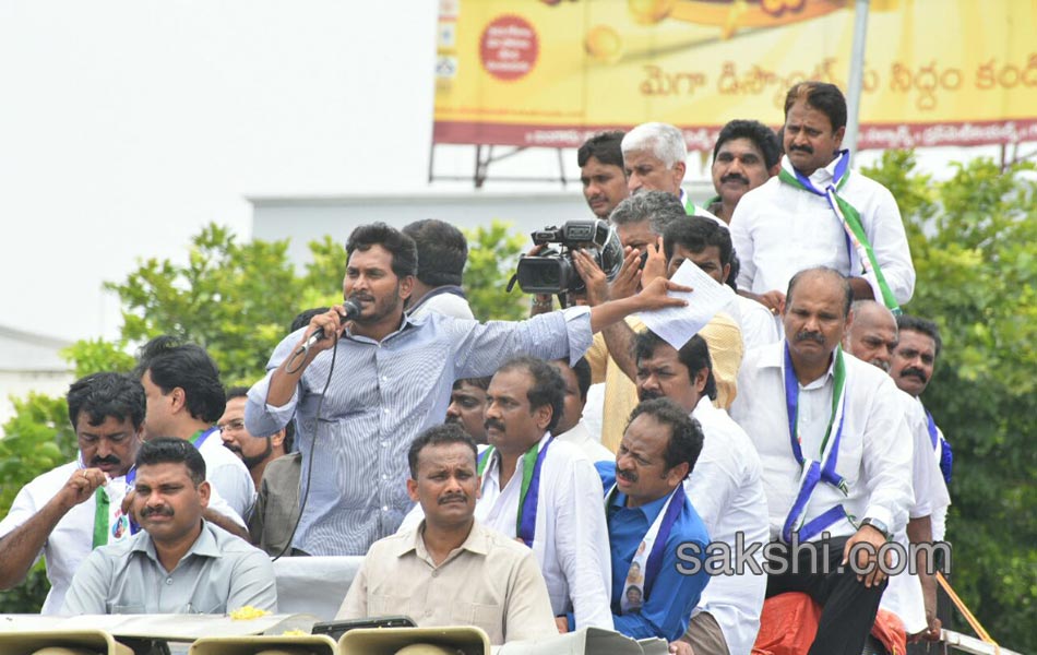 కాకినాడ కార్పొరేషన్‌ ఎన్నికల ప్రచారంలో భాగంగా నగరంలో వైఎస్‌ జగన్‌ ఆదివారం రోడ్‌ షో నిర్వహించారు. భారీగా తరలివచ్చిన జనసందోహాన్ని ఉద్దేశించి ఆయన ప్రసంగించారు. హామీలు అమలు చేయని వారికి మీ ఓటుతో బుద్ధి చెప్పాలని కోరారు.