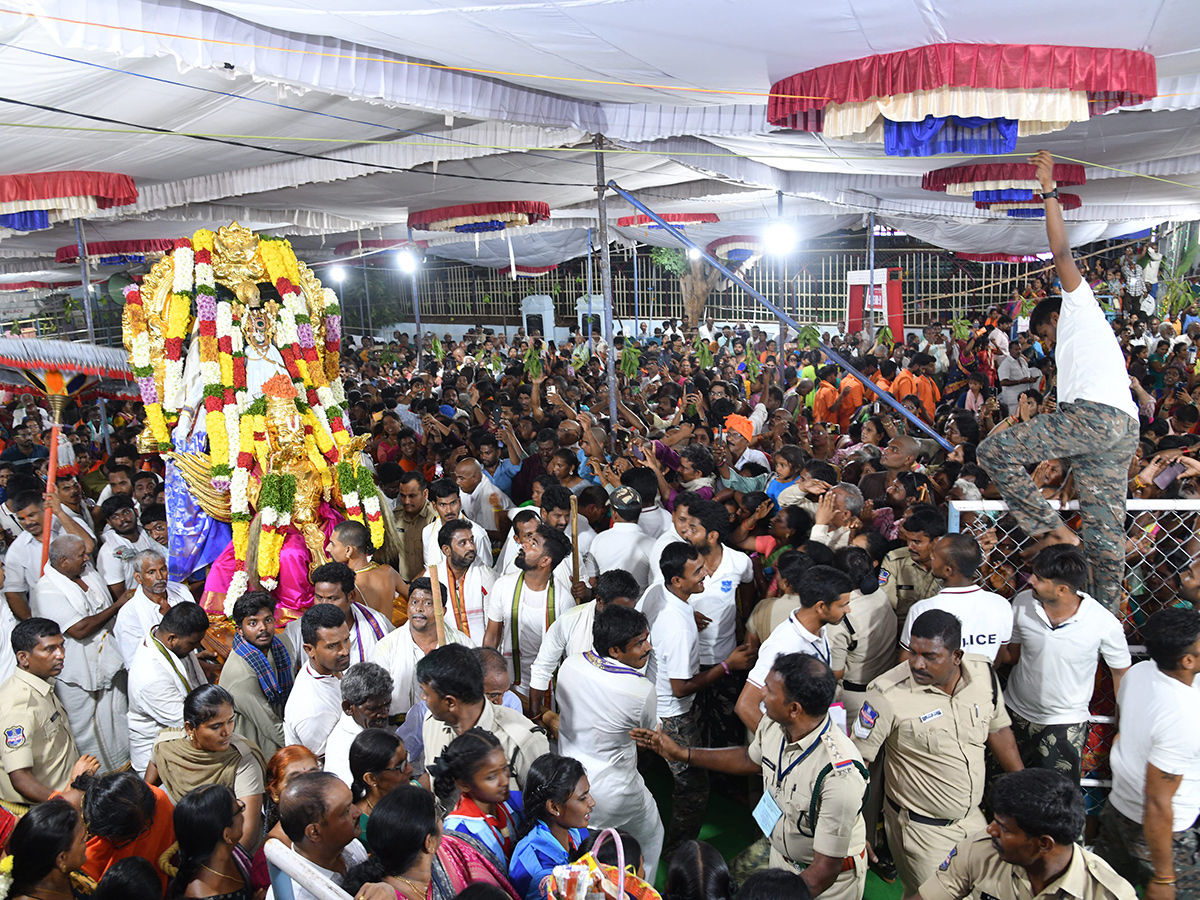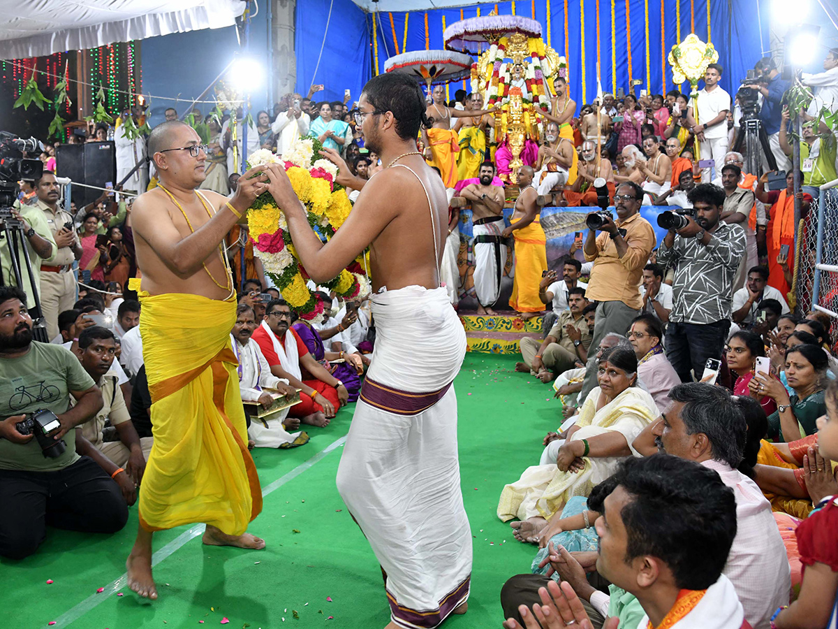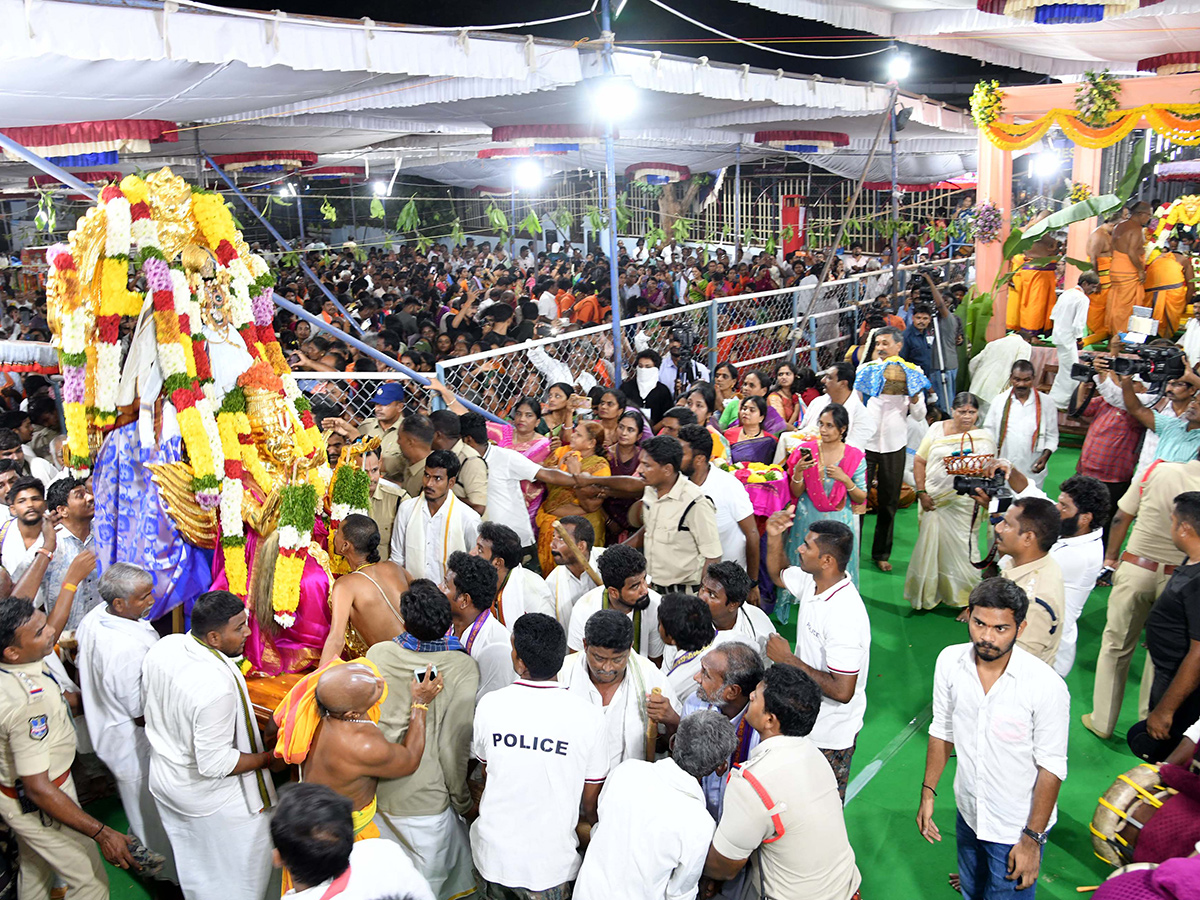 గరుత్మంతుని వాహనంపై స్వామివారిని మిథిలా స్టేడియం ఎదురుగా ఉన్న వైకుంఠ ద్వారం వద్దకు తీసుకొచ్చి కొలువుదీర్చారు