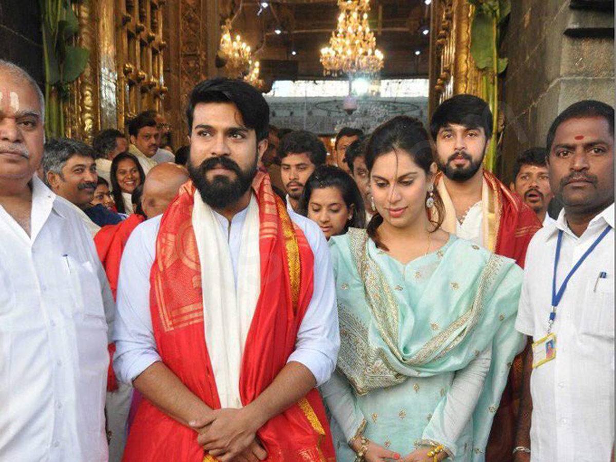 తిరుమల శ్రీ వేంకటేశ్వర స్వామి వారిని నటుడు రాంచరణ్, ఉపాసన దంపతులు దర్శించుకున్నారు. సోమవారం ఉదయం వీఐపీ ప్రారంభ దర్శనంలో వెంకన్న సేవలో పాల్గొన్నారు. టీటీడీ అధికారులు వారికి స్వాగతం పలికి దర్శనం ఏర్పాటు చేశారు.