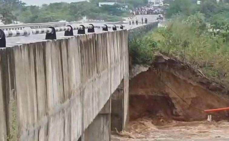 ప్రకాశంలో.. 10 అడుగుల మేర అప్రోచ్ రోడ్డు కొట్టుకుపోయింది