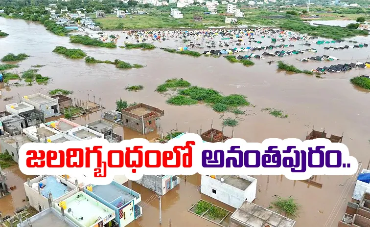 సాక్షి, అనంతపురం: ఉమ్మడి అనంతపురంలో భారీ వర్షాలు ముంచెత్తాయి. అనంతపురం, పెనుకొండ, ధర్మవరం, రాప్తాడులో కురిసిన వర్షానికి.. వాగులు వంకలు పొంగిపొర్లుతున్నాయి. పండమేరు వాగు ఉద్ధృతంగా ప్రవహిస్తోంది. అనంతపురం పట్టణంలోని పలు శివారు కాలనీలు నీటిలో చిక్కుకున్నాయి.