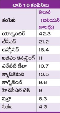 అమెరికా, భారత్‌ చెరో ఎనిమిది ర్యాంకులతో ముందున్నాయి. యాక్సెంచర్‌ 42.3 బిలియన్‌ డాలర్లతో ప్రపంచంలో అత్యంత విలువైన ఐటీ సంస్థగా మొదటి స్థానంలో నిలిచింది. యాక్సెంచర్‌ మొదటి స్థానంలో నిలవడం ఇది వరుసగా ఎనిమిదో ఏడాది. టీసీఎస్‌ వరుసగా ఐదో ఏడాది ఈ జాబితాలో రెండో స్థానాన్ని కాపాడుకుంది. టీసీఎస్‌ విలువను 21.2 బిలియన్‌ డాలర్లుగా బ్రాండ్‌ ఫైనాన్స్‌ అంచనా వేసింది.