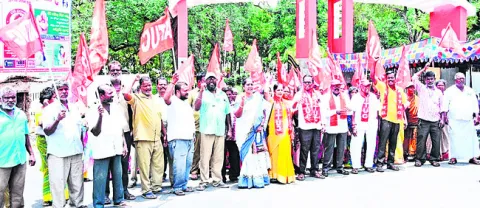 – కలెక్టరేట్ ఎదుట అంగన్వాడీల ధర్నా చిత్తూరు కలెక్టరేట్ : అంగన్వాడీ కార్యకర్తల వేత నాలు పెంచి తీరాల్సిందేనని సీఐటీయూ రాష్ట్ర కార్యదర్శి నరసింహరావు డిమాండ్ చేశారు. అంగన్వాడీ కార్యకర్తలు శుక్రవారం కలెక్టరేట్ ఎదుట ధర్నా నిర్వహించారు. ఈ ధర్నాకు సీఐటీయూ, ఏఐటీయూసీ, ఐఎఫ్టీయూ సంఘాలు మద్దతు తెలిపాయి. రాష్ట్ర కార్యదర్శి నరసింహారావు మాట్లాడు తూ.. పోరాటాలతోనే సమస్యలు పరిష్కరించుకోగలమన్నారు. అధికారంలోకి వస్తే అంగన్వాడీల సమస్యలు పరిష్కరిస్తామన్న చంద్రబాబు ప్రభు త్వం ఎందుకు మీనమేషాలు లెక్కిస్తోందని ప్రశ్నించారు.అధికారంలోకి వచ్చి రెండేళ్లు అవుతున్నా హామీలు నెరవేర్చకపోవడం దారుణమన్నారు. ఇచ్చిన హామీలను నెరవేర్చకపోతే ఆందోళనలు ఉదృతం చేస్తామన్నారు. వేతనాల పెంపు చేయకపోగా పనిభారం పెంచారన్నారు. అంగన్వాడీ కార్యకర్తలపై రాజకీయ వేధింపులు ఎక్కువైనట్లు తెలిపారు. శిశు సంక్షేమ శాఖా మంత్రి రకరకాలుగా సోషల్ మీడియాలో హెచ్చరికలు జారీచేసిన అధిక సంఖ్యలో ధర్నాలో పాల్గొన్నారన్నారు. దీని బట్టి వ్యతిరేకత ఎలా ఉందో ప్రభుత్వం అర్థం చేసుకోవాలన్నారు. సుప్రీంకోర్టు తీర్పు ప్రకారం సమాన పనికి సమాన వేతనం, గ్రాట్యూటీ అమలు చేయాలన్నారు. సమస్యలు పరిష్కరించకపోతే ప్రభుత్వానికి భవిష్యత్తులో తగిన గుణపాఠం చేబుతామని హెచ్చరించారు. అనంతరం డీఆర్వో మోహన్ కుమార్ కు వినతిపత్రం అందజేశారు. ఈ ధర్నాలో ఏఐటీయూసీ జిల్లా గౌరవ అధ్యక్షుడు నాగరాజు, సీఐటీయూ జిల్లా గౌరవ అధ్యక్షుడు వాడ గంగరాజు, ఐఎఫ్టీయూ జిల్లా కార్యదర్శి సుబ్రహ్మణ్యం, సీఐటీయూ జిల్లా ప్రధాన కార్యదర్శి గుప్తా, అంగన్వాడీ సంఘాల నాయకులు ప్రమీల, మమత, లీలావతి, మమత, కార్యకర్తలు అధిక సంఖ్యలో పాల్గొన్నారు. -
