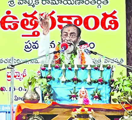 ఆల్కాట్తోట (రాజమహేంద్రవరం రూరల్): ‘పురాణ కథలకు సంబంధించిన సినిమాలు చూసి సంతోషించండి. ఇంకా ఆనందం కలిగితే చప్పట్లు కొట్టండి, కానీ నమ్మకండి’ అని సమన్వయ సరస్వతి సామవేదం షణ్ముఖశర్మ వ్యాఖ్యానించారు. స్థానిక హిందూ సమాజంలో చేస్తున్న వ్యాసభారత ప్రవచనంలో ఆయన మంగళవారం సభాపర్వం ముగించి, వనపర్వంలోకి ప్రవేశించారు. తండ్రి ఎముకలతో చేసిన పాచికలను శకుని ఉపయోగించాడంటూ ఓ సినిమాలో ప్రధానంగా చూపారని, ఇటువంటి కథనం భారతంలో కానీ, ఇతర పురాణాలలో కానీ లేదని చెప్పారు. నిజం చెప్పినా ప్రజలు శంకించేంతలా అసత్యాలు ప్రాచుర్యం పొందుతున్న పరిస్థితులు దాపురించాయని ఆవేదన వ్యక్తం చేశారు. ‘‘ద్యూతానికి పాండవులను మళ్లీ పిలవాలని విదురుడిని ఆదేశించినప్పుడు భీష్మద్రోణ కృపాచార్యులు, గాంధారి తదితర పెద్దలందరూ ధృతరాష్ట్రుడిని వారించడానికి ప్రయత్నిస్తారు. అవినీతి, క్రౌర్యంతో సంపాదించుకున్న సంపద వినాశ హేతువు అవుతుందని హితైషులు హెచ్చరిస్తారు. కానీ, ధృతరాష్ట్రుని బుద్ధి వేరు. మామకాః పాండవాః.. అని ఆయన అనడంలో ఆంతర్యం బయటపడుతోంది. నా వాళ్లు వేరు, పాండవులు వేరు అని దీని భావం. ద్యూతానికి మళ్లీ వచ్చిన ఆహ్వానాన్ని ధర్మరాజు అంగీకరించడాన్ని కొందరు ఆధునికులు విమర్శిస్తారు. బంగారు లేడి ఉండదని తెలిసే, రాముడు దానిని తేవడానికి బయలుదేరినట్టు.. మాయాద్యూతమని తెలిసే, తండ్రి ఆనతి మీర లేక, ధర్మరాజు తిరిగి ఆడటానికి వస్తాడు. విధిని అనుసరించి బుద్ధి ఉంటుంది. పరాజితులైన పాండవులతో వెళ్తున్న ద్రౌపదిని చూసి దుశ్శాసనుడు పలుమార్లు ‘ఎద్దు, ఎద్దు’ అని ఆమెను హేళన చేస్తాడు. భీముడు ఉగ్రుడై దుశ్శాసనుడి రొమ్ము పగులగొట్టి, రక్తం తాగుతానని ప్రతిన చేస్తాడు. తన తొడను ద్రౌపదికి చూపిన దుర్యోధనుడితో తొడలు పగులగొడతానని, లేకపోతే తనకు పుణ్యగతులు కలగవని ప్రతిన చేస్తాడు. తొడలు పగులగొట్టడం యుద్ధనీతికి వ్యతిరేకమే అయినా, ధర్మబద్ధమైన ప్రతిజ్ఞా పాలన కోసం యుద్ధనీతిని అతిక్రమించవచ్చు’’ అని సామవేదం వివరించారు. పాండవులను వేదవేత్తలు అనుసరించారంటూ ఆయన వనపర్వాన్ని ప్రారంభించారు. వ్యాసుడు వనపర్వంగా పేర్కొన్న పర్వాన్ని నన్నయ అరణ్య పర్వమన్నాడని వివరించారు. తొలుత కంచి కామకోటి సంయమీంద్రులు చంద్రశేఖరేంద్ర సరస్వతీ మహాస్వామి వారి ఆరాధనోత్సవాన్ని పురస్కరించుకొని, పీఠాధిపతి శంకర విజయేంద్రసరస్వతి స్వామి సూచనల మేరకు రుద్రహోమం నిర్వహించి, అనుశాసన పర్వాంతర్గతమైన శివ సహస్రనామ పారాయణ నిర్వహించారు. -