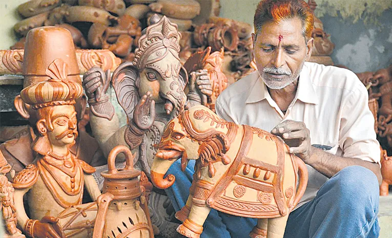 సంప్రదాయ టెర్రకోట కళనుప్రోత్సహించి కళాకారులను ఆదుకునేందుకు ఉత్తర్ప్రదేశ్ యోగి ఆదిత్యనాథ్ సర్కార్ సిద్దమయ్యింది. గోరఖ్ పూర్ ప్రాంతానికి చెందిన ఈ అరుదైన కళను కాపాడటమే కాదు అంతర్జాతీయ స్థాయికి తీసుకెళ్లేందుకు యూపీ ప్రభుత్వం ప్రయత్నిస్తోంది. ఇందులో భాగంగానే ఉత్తరప్రదేశ్లోని నోయిడాలో అంతర్జాతీయ వాణిజ్య ప్రదర్శనలో నాలుగు ప్రత్యేక స్టాల్స్లో కళాకారుల ఉత్పత్తులను ప్రదర్శిస్తారు. సెప్టెంబర్ 25–29 వరకు జరగనున్న ఈ కార్యక్రమం ద్వారా టెర్రకోట కళను ప్రపంచానికి పరిచయం చేసే ప్రయత్నం చేస్తోంది యూపీ సర్కార్.టెర్రకోట కళను ప్రోత్సహించే దిశగా 2018లోనే సీఎం యోగి ఆదిత్యనాథ్ చర్యలు తీసుకున్నారు. ఈ నిర్ణయమే టెర్రకోట పరిశ్రమను పూర్తిగా మార్చేసిందని జాతీయ అవార్డు గ్రహీత, టెర్రకోట కళాకారుడు రాజన్ ప్రజాపతి అన్నారు. 2017కి ముందు కష్టాల్లో ఉన్న ఈ కళ ఇప్పుడు కొత్త ఎత్తుకు చేరుకుందని, ఈ ఒక్క ఏడాదే వివిధ రాష్ట్రాల నుండి రూ.7 కోట్లకు పైగా ఆర్డర్లు వచ్చాయని తెలియజేశారు.ప్రపంచ మార్కెట్లోకి...త్వరలో జరగనున్న వాణిజ్య ప్రదర్శనలో విభిన్న రకాల టెర్రకోట ఉత్పత్తులను ప్రదర్శిస్తారు, ఇది ప్రపంచ మార్కెట్లోకి ప్రవేశించడానికి కళాకారులకు అద్భుతమైన అవకాశాన్ని అందిస్తుంది. సిఎం యోగి ఆదిత్యనాథ్ ఈ కళను బ్రతికించేందుకు, కళాకారులను ఆదుకునేందుకు నిరంతర బ్రాండింగ్ ప్రయత్నాలు చేస్తున్నారు.ప్రభుత్వ ప్రయత్నాలూ కళకు చేదోడుఉపరాష్ట్రపతి జగదీప్ ధన్ఖర్ గోరఖ్పూర్ పర్యటన సందర్భంగా సిఎం యోగి టెర్రకోట గణేష్ విగ్రహాన్ని బహుమతిగా అందజేశారు. 2022లో అప్పటి రాష్ట్రపతి రామ్నాథ్ కోవింద్కు టెర్రకోట విగ్రహాలను అందజేసారు. ఇలా ఈ కళకు ప్రచారం కల్పంచేందకు అవసరమైన చర్యలన్నీ తీసుకుంటున్నది అక్కడి ప్రభుత్వం. ప్రభుత్వ ప్రయత్నాలు కళను ప్రోత్సహించమే కాకుండా దాని నాణ్యత, ఆకర్షణను కూడా నిర్ధారించాయి. దీని ఫలితంగా ప్రముఖులు, వారి సిబ్బంది గణనీయమైన కొనుగోళ్లు చేశారు. ప్రపంచ మార్కెట్ ఇప్పుడు అందుబాటులోకి రావడంతో గోరఖ్పూర్ టెర్రకోట క్రాఫ్ట్ అపూర్వమైన ప్రఖ్యాతిని సొంతం చేసుకుంటోంది. -