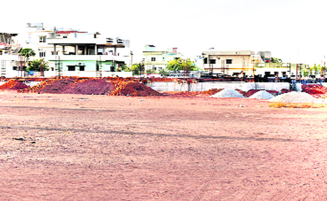 మోస్తరుగా స్టేడియం పనులు జరిగిన దృశ్యం