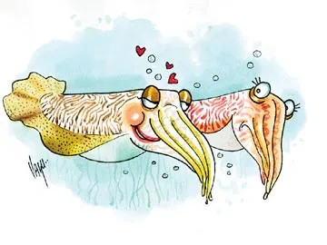 కటిల్ఫిష్ అనే ఒక చేప కాని చేప ఉంది. నిజానికి మన తెలుగువాళ్లే దానికి ‘కుటిల’ ఫిష్ అని పేరు పెట్టారేమో! ఇంగ్లిషు వాళ్లు దాన్ని తమ ధోరణిలో కటిల్ అని చదివారేమో!! ప్రకృతిలోని ఓ అమాయకపు ప్రాణికి కుటిల చేప అని పేరు పెట్టడానికి నీకు సిగ్గులేదా అని తిట్టకండి. దాని నైజం మన మగాళ్ల లాంటిదే. దాన్ని తిట్టడమంటే మనల్ని తిట్టుకోవడమే. మనల్ని మనం తిట్టుకోగలమా! కటిల్ఫిష్ జాతిలోని అమ్మాయిని ఆకర్షించడానికి మగవన్నీ కిందామీదా పడతాయి. ఒకదానితో ఒకటి పోటీ పడతాయి. ఈ పోటీలో భాగంగా పిచ్చివేషాలన్నీ వేస్తాయి. తప్పదు మరి. అలా పిచ్చివేషాలు వేయకపోతే ఛాన్సులన్నీ బలమైన కటిల్ఫిష్కే. రాజ్యం వీరభోజ్యంలాగా... ఏది శక్తిమంతమో దానికే ఆడది సొంతం. పైగా చిన్నవి పోరాటంలో పెద్దవాటిని గెలవలేవు. అందుకే ఈ పిచ్చివేషాలు.