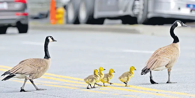 అమెరికా రాజధాని వాషింగ్టన్లో జనసంచారం లేని రోడ్డుపైకి పిల్లలతోపాటు వచ్చిన బాతులు