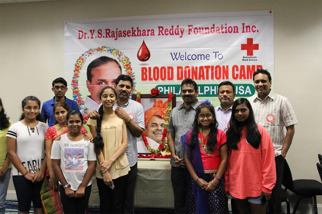 ఫిలడెల్ఫియా : రాజశేఖరరెడ్డి ఫౌండేషన్ ఆధ్వర్యంలో ఫిలడెల్ఫియాలో మెగా రక్తదాన శిబిరం ఏర్పాటు చేశారు. దివంగత ముఖ్యమంత్రి వైఎస్ రాజశేఖర రెడ్డి తొమ్మిదవ వర్థంతి సందర్భంగా ఈ కార్యక్రమాన్ని చేపట్టారు. డా. రాఘవరెడ్డి గోశాల, రాజేశ్వరరెడ్డి, ఆళ్ల రామిరెడ్డి, పలువురు వాలంటీర్ల సహకారంతో జరిగిన రక్తదాన శిబిరానికి ఈశాన్య అమెరికాలో వివిధ ప్రాంతాలకు చెందిన వైఎస్సార్ అభిమానులు వచ్చారు. వైఎస్సార్ వర్థంతి, 9/11 బాధితుల జ్ఞాపకార్థం దాదాపు 150మందికి పైగా వైఎస్సార్ అభిమానులు రెడ్ క్రాస్కు రక్తదానం చేశారు. ఈ కార్యక్రమాన్ని విజయవంతంగా నిర్వహించినందుకు సెక్రెటరీ అన్నా రెడ్డి, జాయింట్ ట్రెజరర్ శరత్ మందపాటి, శివ మేక, హరి వెల్కూరు, జ్యోతి రెడ్డి, సహదేవ్ రెడ్డి, శ్రీకాంత్ పెనుమాడ, వెంకటరామిరెడ్డి, శ్రీనివాస్ ఎమాని, మధు గోనిపాటి, విజయ్ పొలంరెడ్డి, టాటా రావు, శ్రీధర్ తిక్కవరపు, రామ్ కల్లం, గీతా దోర్నాదుల, రామ్మోహన్ రెడ్డి యెల్లంపల్లి, నాగరాజ రెడ్డి, జగన్ దుద్దుకుంట, ఆనంద్ తొండపు, అంజి రెడ్డి సగంరెడ్డి, రవి మరక, హరి కురుకుండ, అజయ్ యరాట, నరసింహారెడ్డి, మునీష్ రెడ్డి, ప్రసన్న కకుమను, సుదర్శన్ దేవిరెడ్డిలకి వైఎస్సార్ ఫౌండేషన్ కోర్ కమిటీ సభ్యులు డా. రాఘవరెడ్డి గోశాల ప్రత్యేక కృతజ్ఞతలు తెలిపారు. వైఎస్సార్ ప్రవేశ పెట్టిన ఆరోగ్య శ్రీ, 108 అంబులెన్స్లు పేద ప్రజలకు ఎంతగానో ఉపయోగపడ్డాయిన గుర్తు చేశారు. అధ్యక్షులు ఆళ్ల రామిరెడ్డి, కోర్ కమిటీ సభ్యులు రాజేశ్వరరెడ్డిలు రక్తదానం చేసిన వారిని అభినందించారు.