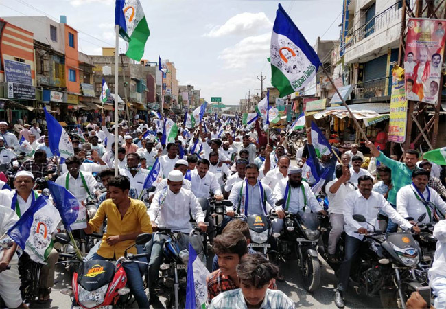 అపట్టణంలో బైక్ర్యాలీగా వస్తున్న వైఎస్సార్సీపీ కార్యకర్తలు
