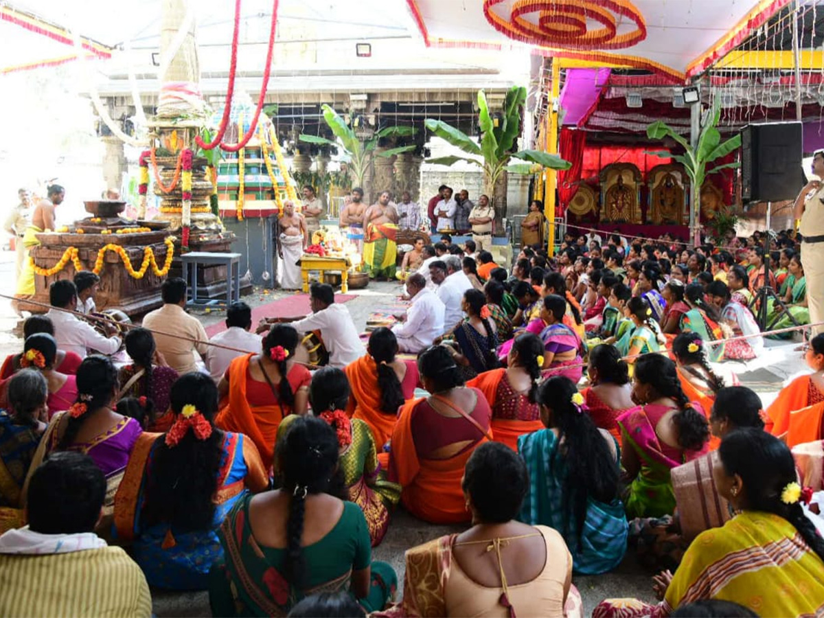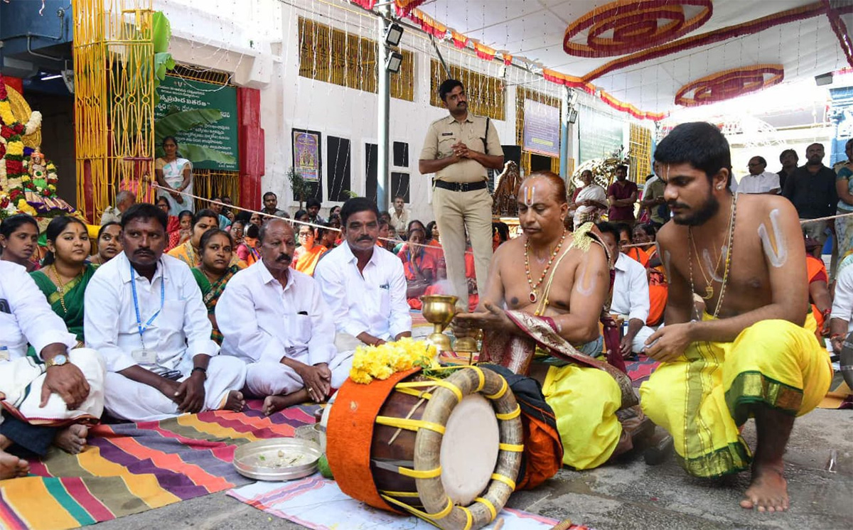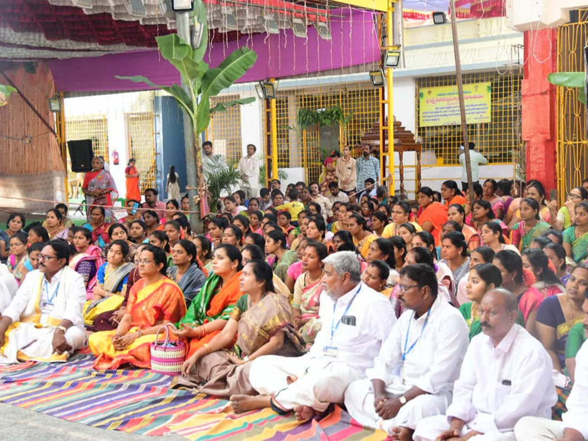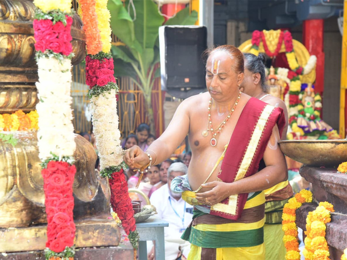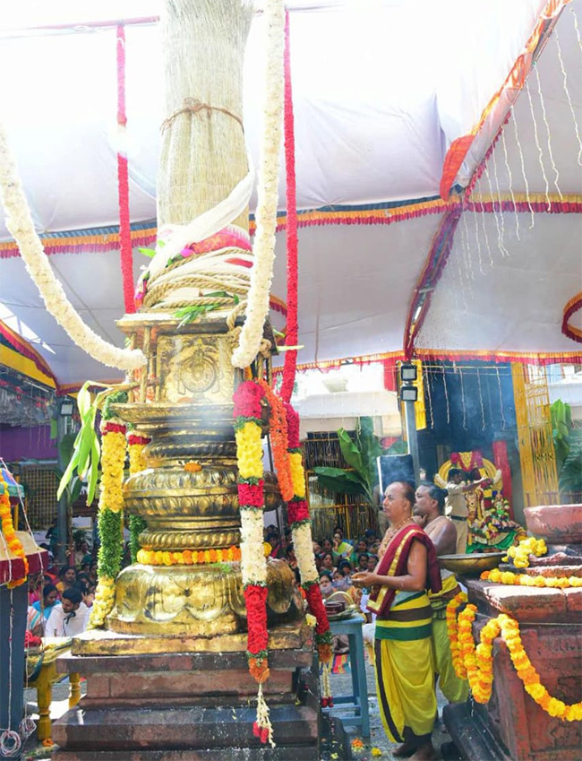 ఈ సందర్భంగా ఉదయం వేద పండితుల ఆధ్వర్యంలో ధ్వజారోహణం నిర్వహించారు