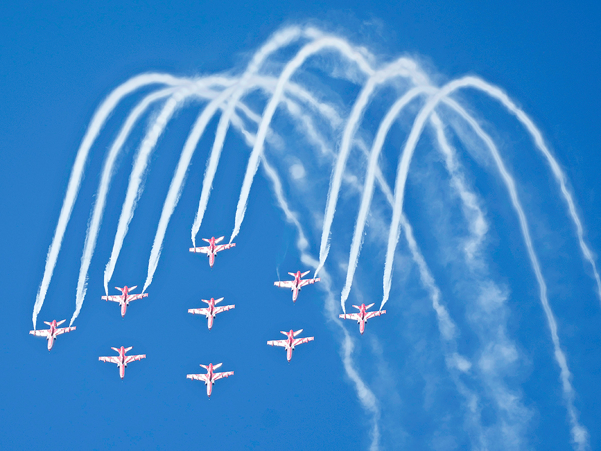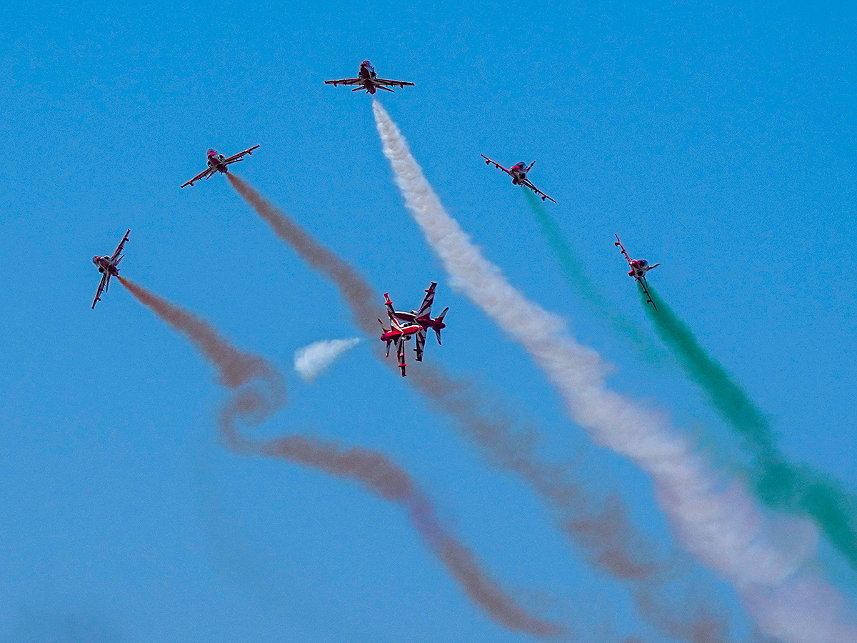 ఐదు రోజుల పాటు జరిగే ఈ కార్యక్రమంలో భారత వైమానిక దళాల ప్రదర్శనలు ఉంటాయి. యుద్ధ విమానాల విన్యాసాలు కనువిందు చేస్తున్నాయి