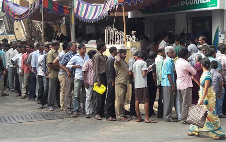 రూ.వెయ్యి, రూ.500 నోట్ల మార్పిడి కోసం వచ్చే ప్రజలతో బ్యాంకులు కిటకిటలాడుతున్నాయి. జిల్లా వ్యాప్తంగా అన్ని బ్యాంకులు, పోస్టాఫీసుల వద్ద ప్రజలు క్యూ కడుతున్నారు. శని, ఆదివారాల్లో కూడా బ్యాంకులు పనిచేస్తాయని ప్రభుత్వం ప్రకటించడంతో ఖాతాదారులు సొమ్ములు మార్చుకునేందుకు బారులు తీరుతున్నారు.