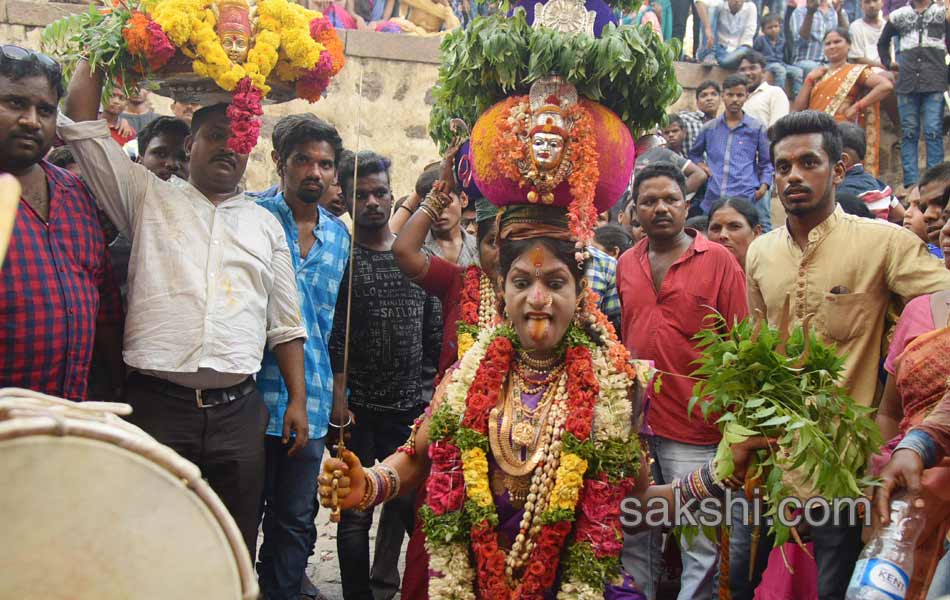 పండుగల శోభతో భాగ్యనగరి మురిసిపోయింది. ఆదివారం ‘గోల్కొండ’ బోనాలు నేత్రపర్వంగా ప్రారంభమయ్యాయి. బోనమెత్తిన మహిళలు...అందంగా అలంకరించిన తొట్టెలు, పోతురాజులు...శివసత్తుల విన్యాసాలు..సంప్రదాయ నృత్యాలు.. వాయిద్యాలు, కోలాటాలు, తీన్మార్‌ చప్పుళ్లతో ‘కోట’ మారుమోగింది. వందలాది మంది మహిళలు తరలివచ్చి జగదాంబిక మాతకు బోనం సమర్పించారు.
