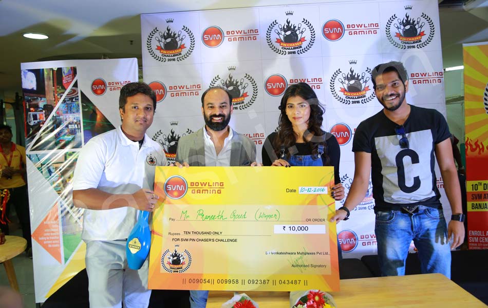 ఎస్ వి ఎం వారి నిర్వహణలో పిన్ చేసేర్స్ టోర్నమెంట్ నిర్వహించించి . ఇందులో భాగంగా సిటీలో 6 చోట్ల 6 గురుని ఎంపిక చేసి విజేతలను "నాన్న నేను నా బాయ్ ఫ్రెండ్స్ " ఫేమ్ హెబ్బా పటేల్ , పార్వతీశం , నోయెల్ చేతుల మీద rs 10000 చెక్కు మరియు మొమెంటో అందజేయటం జరిగింది . ఈ సందర్బంగా తారలు సరదాగా కాసేపు ఎస్ వి ఎం మాల్ లో బౌలింగ్ ఆడుతూ సందడి చేసారు .