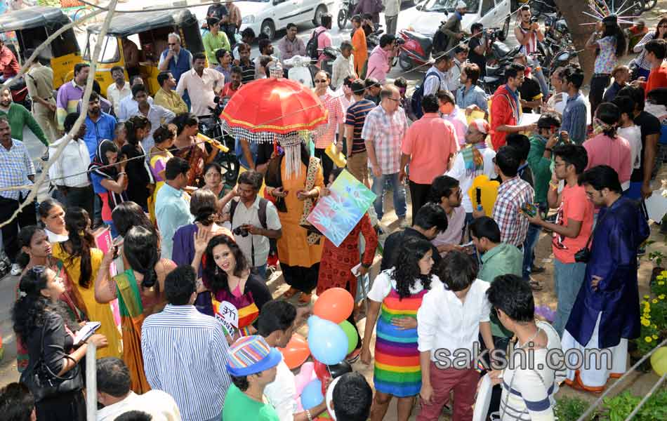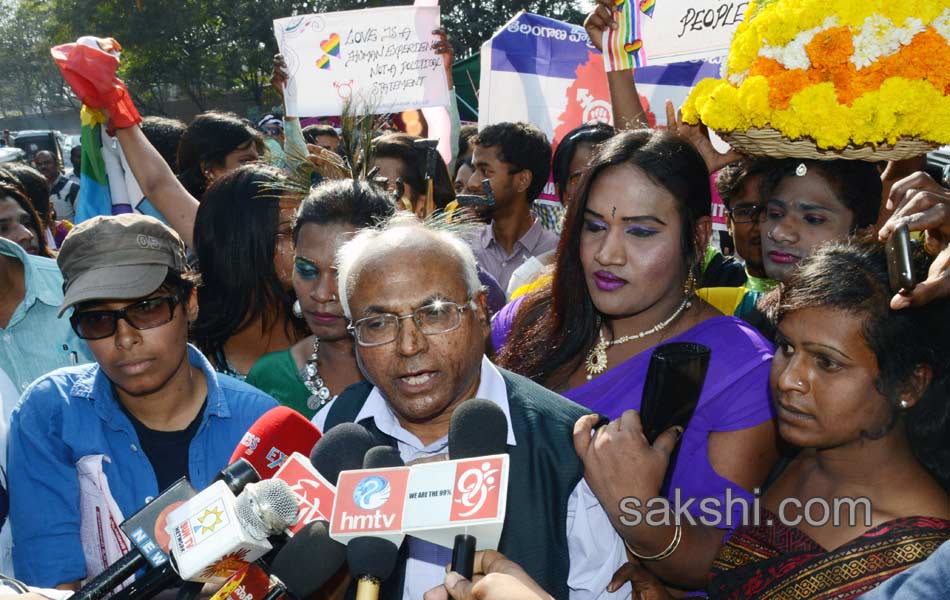 తెలంగాణ హిజ్రా ట్రాన్స్జెండర్ సమితి ఆధ్వర్యంలో హైదరాబాద్లో ఆదివారం క్వీర్ స్వాభిమాన యాత్ర జరిగింది. హిజ్రాలు లోయర్ ట్యాంక్ బండ్ గోశాల నుంచి ధర్నా చౌక్ వరకు ర్యాలీ నిర్వహించారు. తమపై వివక్ష చూపకుండా మనుషుల్లా గౌరవించాలని డిమాండ్ చేశారు.