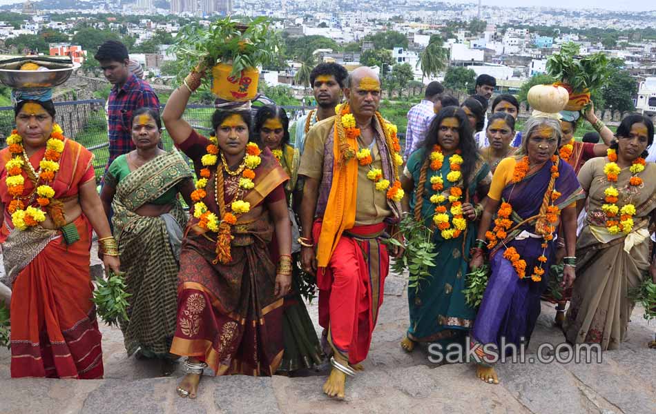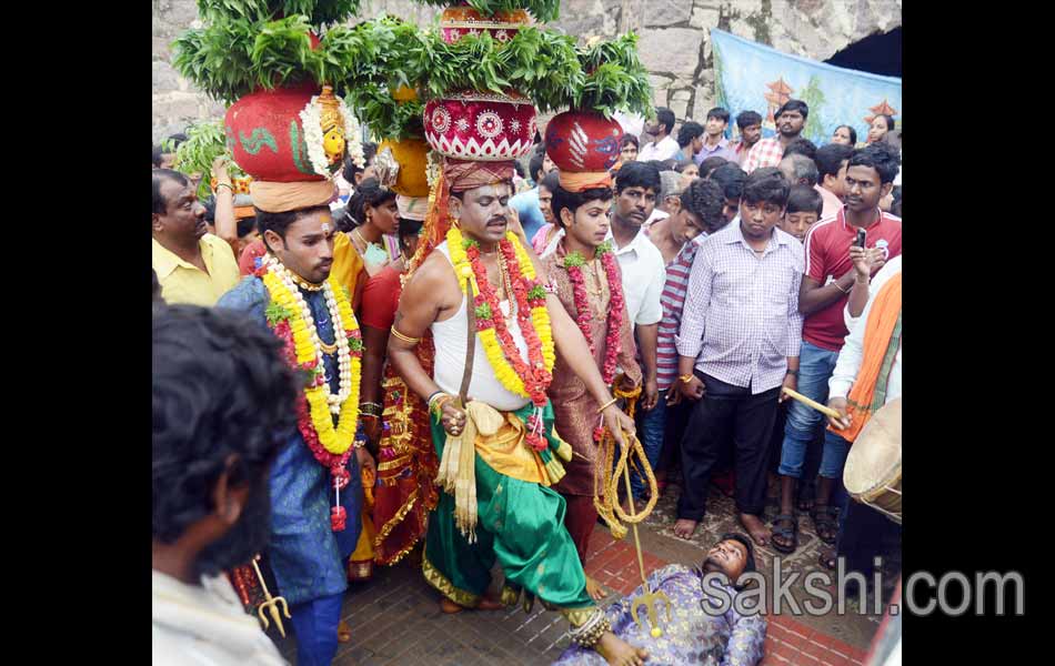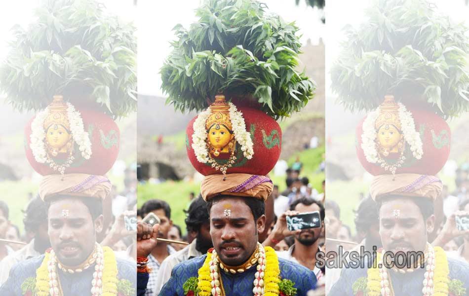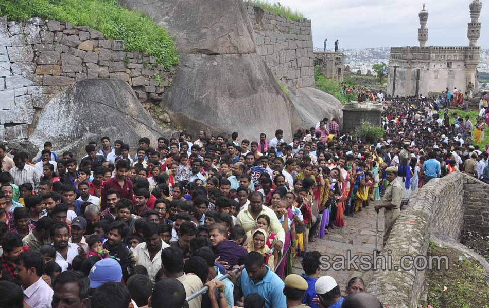 నగరానికి పండగొచ్చింది. ఓ వైపు వాన చినుకులు.. మరోవైపు బోనాలు.. గోల్కొండ కోట భక్తులతో కిటకిటలాడింది. కోటలో కొలువుదీరిన శ్రీజగదాంబిక అమ్మవారి బోనాల ఉత్సవాల సందర్భంగా ఆదివారం(10-07-2016) రెండో పూజ అత్యంత వైభవంగా జరిగింది.