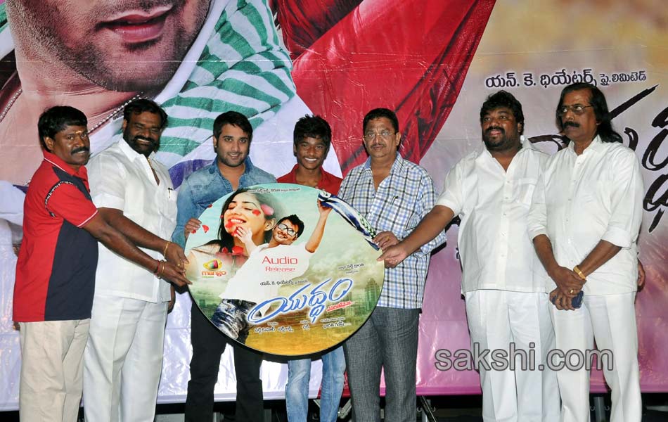 'తరుణ్‌', 'యామీ గౌతమ్‌' జంటగా నటిస్తున్న చిత్రం 'యుద్ధం'. భారతి గణేష్‌ దర్శకత్వంలో రూపొందుతున్న ఈ మూవీకి 'ఎవరితోనైనా' అనేది ఉపశీర్షిక. నట్టి క్రాంతి సమర్పణలో ఎన్‌.కె.థియేటర్స్‌ ప్రై.లి.పతాకంపై నట్టికుమార్‌ నిర్మిస్తున్నారు. చక్రి సంగీతం అందించిన ఈ చిత్రం ఆడియో ఆవిష్కరణ ఆదివారం ప్రసాద్‌ ప్రివ్యూ థియేటర్‌లో జరిగింది. ముఖ్య అతిథిగా విచ్చేసిన సి.కళ్యాణ్‌ ఆడియో సిడిలను ఆవిష్కరించారు.