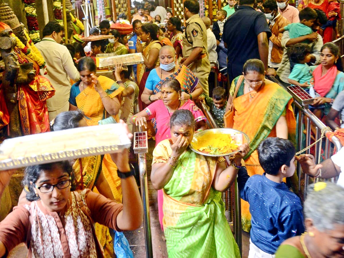 ఆషాడ మాస సందర్భంగా విజయవాడ దుర్గ గుడిలో భక్తులు పోటెత్తారు. అమ్మవారికి సారే వివిధ రకాల వంటకాలను సమర్పించిన భక్తులు.