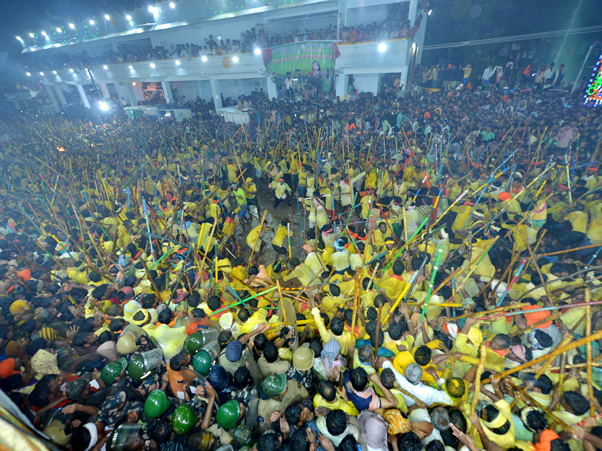 Bunny Festival Devaragattu : కర్నూలు జిల్లా దేవరగట్టులో అనాదిగా వస్తున్న ఆచారమే పైచేయిగా నిలిచింది. ఎడతెరిపి లేకుండా కురుస్తున్న వర్షంలోనూ భక్తులు కర్రల సమరాన్ని అత్యంత ఉద్వేగంగా, ఉత్కంఠ భరితంగా సాగించారు. దీంతో దాదాపు 86 మందికి గాయాలయ్యాయి.