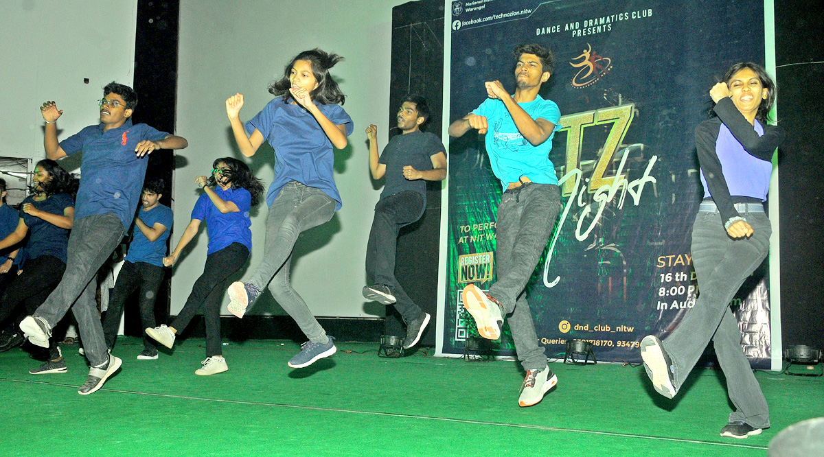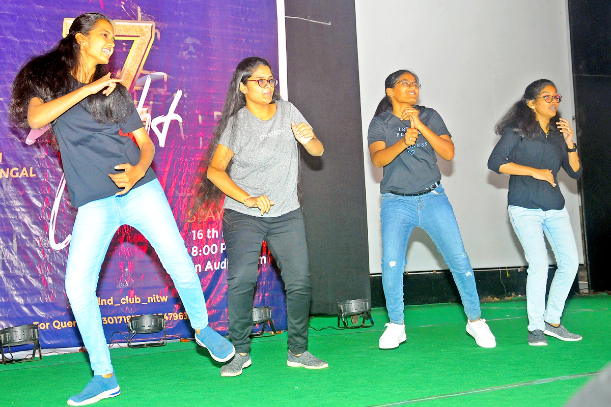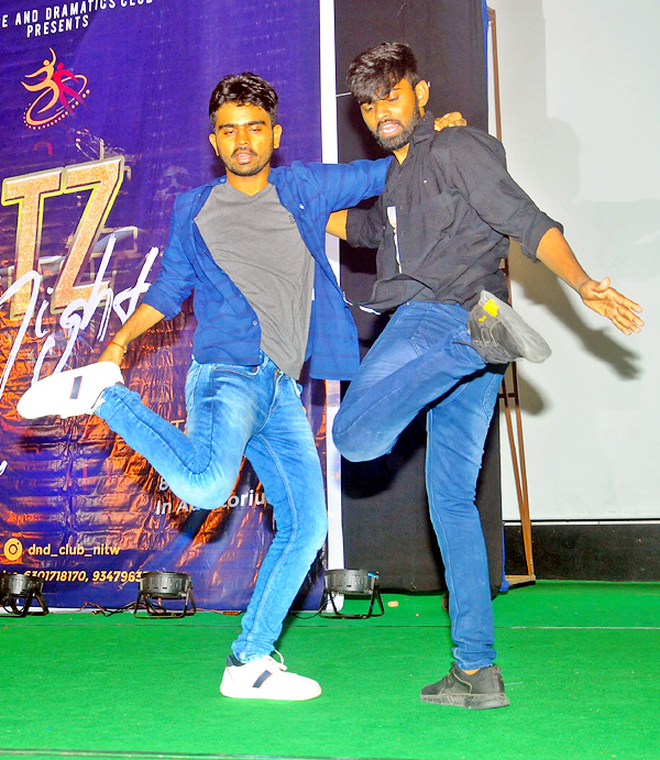 నిట్ ఆడిటోరియంలో శుక్రవారం రాత్రి డ్రామా అండ్ డ్రమటిక్స్ క్లబ్ ఆధ్వర్యంలో డీజే మ్యూజిక్ అండ్ డ్యాన్స్ నైట్షో అలరించింది. షోలో సుమారు 60మంది విద్యార్థులు వివిధ రకాల తెలుగు, హిందీ, ఇంగ్లిష్ పాటలకు డ్యాన్స్ చేశారు. తోటి విద్యార్థులు కేరింతలు కొడుతూ అరుపులు, కేకలతో పుల్ జోష్ నింపారు.
