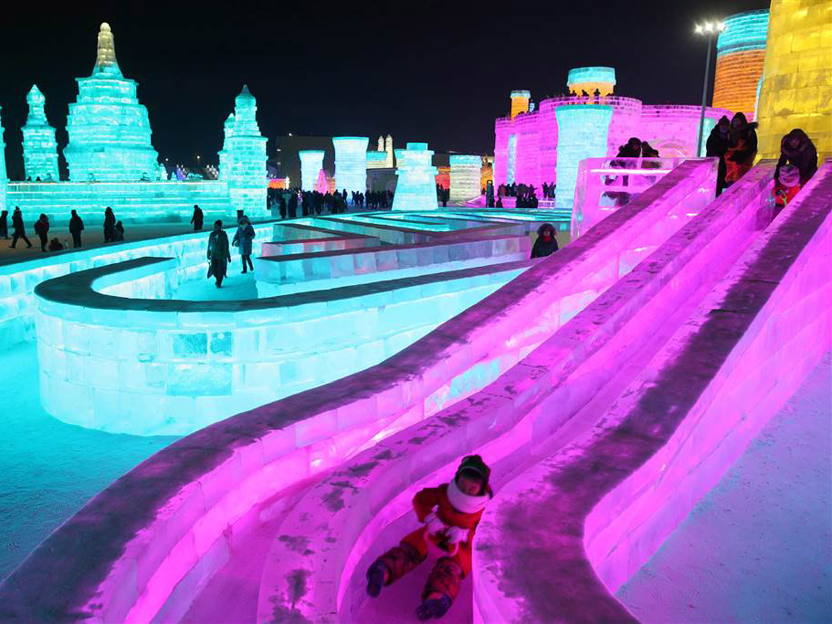 చైనాలోని హర్బిన్ పట్టణంలో జరుగుతున్న ఐస్ ఫెస్టివల్లో ప్రదర్శనకు ఉంచిన మంచు కళాఖండాలు. చారిత్రక ప్రదేశాలు పక్షులు తదితర నిర్మాణాల్ని చూసేందుకు సందర్శకులు తరలివచ్చారు.