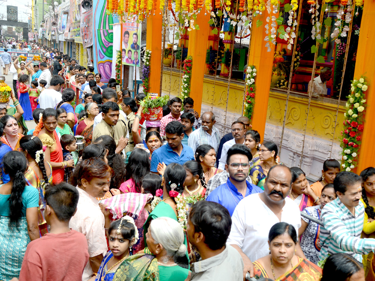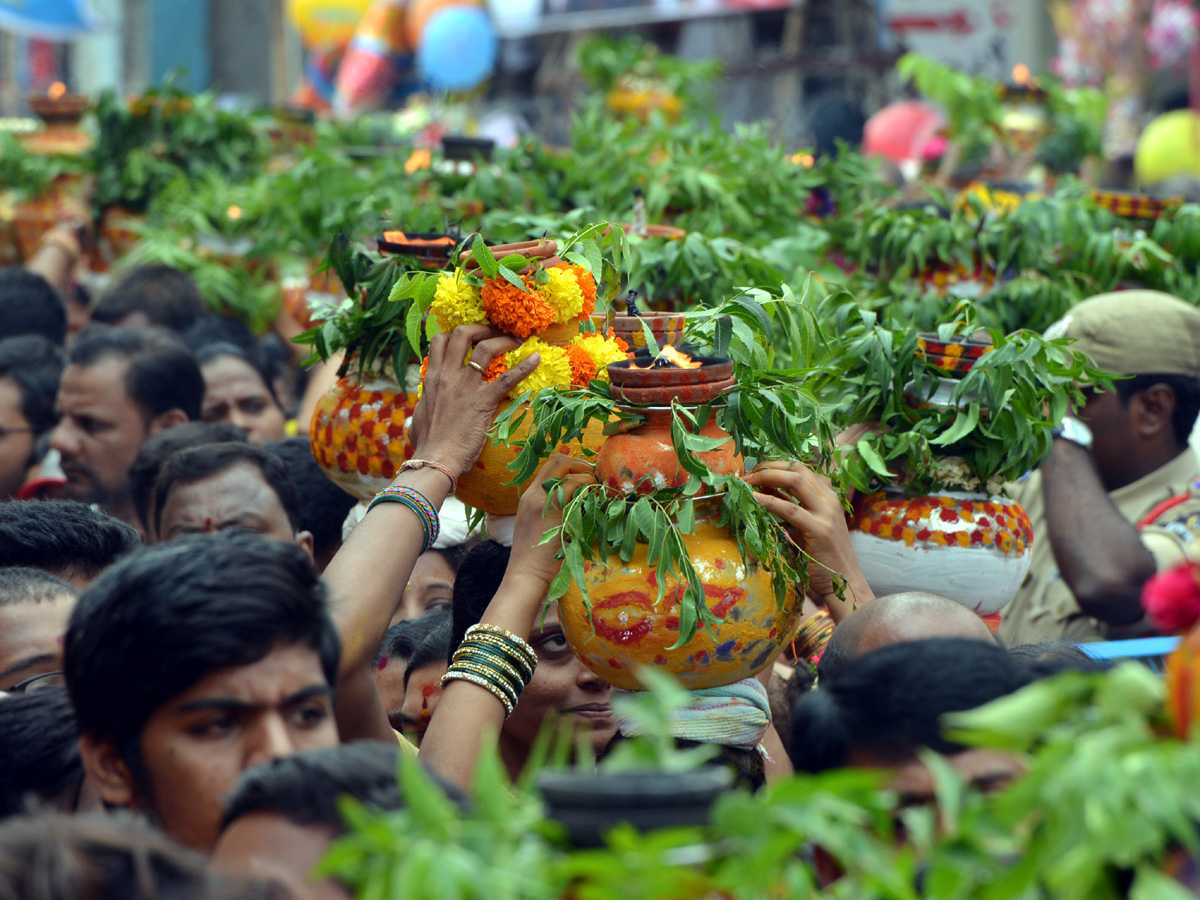 భాగ్యనగరం బోనమెత్తింది. ఆదివారం వాడవాడలా బోనాల సంబురం మిన్నంటింది. పాతబస్తీలోని లాల్దర్వాజా సింహవాహిని ఆలయానికి భక్తులు పోటెత్తారు. అమ్మవారికి బోనం సమర్పించేందుకు ఉదయం నుంచే మహిళలు బారులు తీరారు. మంత్రులు నాయిని, ఇంద్రకరణ్రెడ్డి, తలసాని పట్టువస్త్రాలు సమర్పించారు. నటి విజయశాంతి బంగారు బోనంతో విచ్చేశారు.