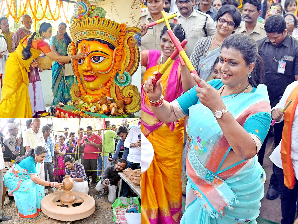 Vijayawada: సంక్రాంతి సందడి పేరుతో భవానీ ద్వీపంలో ఏపీ పర్యాటక శాఖ నిర్వహించిన సంబరాల్లో మంత్రి ఆర్కే రోజా సందడి చేశారు. సినీ నటి ఇంద్రజ కూడా సంబరాల్లో పాల్గొన్నారు.