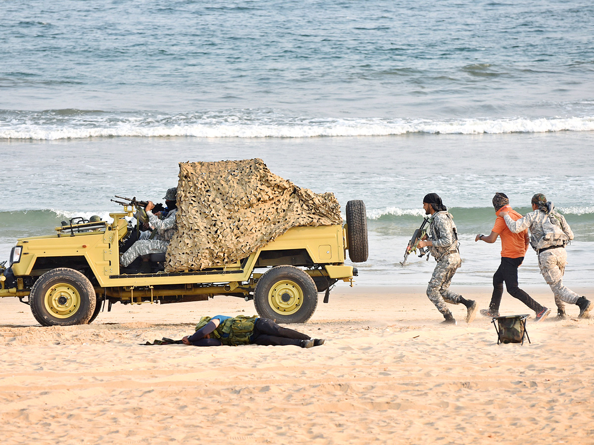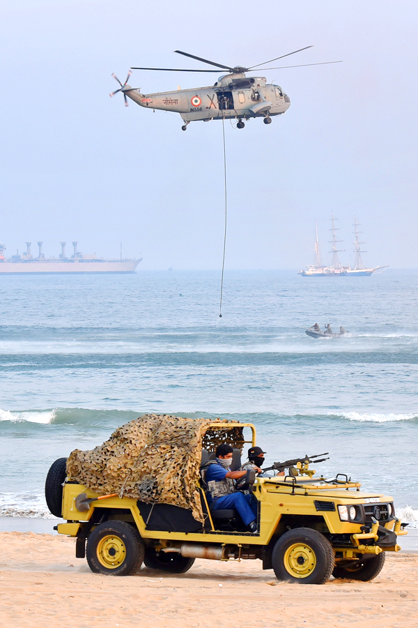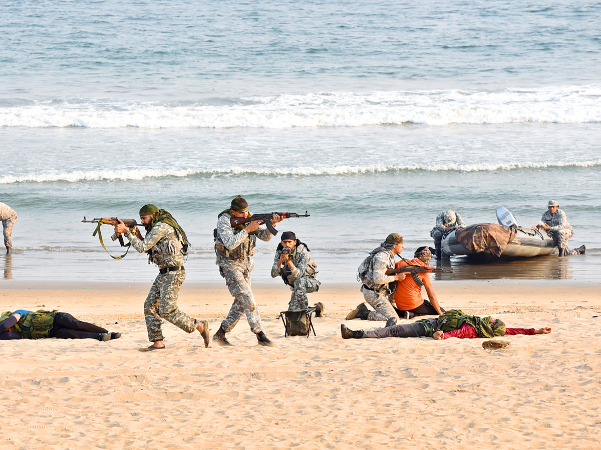 Navy Rehearsals From Visakhapatnam : ఉగ్రవాదులు అలజడి సృష్టించారు. రంగంలోకి దిగిన నేవీ కమాండర్లు బందీలను రక్షించారు. ఉగ్రమూకలను మట్టుబెట్టారు. ఇదంతా ఫ్లీట్ రివ్యూకు సంబంధించి రిహార్సల్స్ అని తెలుసుకొని సందర్శకులు ఊపిరి పీల్చుకున్నారు.