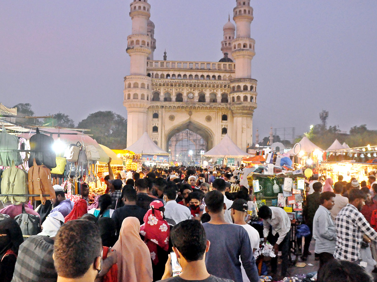 ట్యాంక్బండ్పై సందర్శకుల హడావిడీ, సందడిగా చార్మినార్