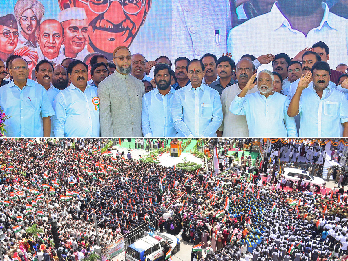 ఉప్పొంగిన దేశభక్తి.. తెలంగాణలో సామూహిక జాతీయ గీతాలాపన (ఫొటోలు)