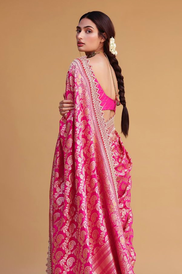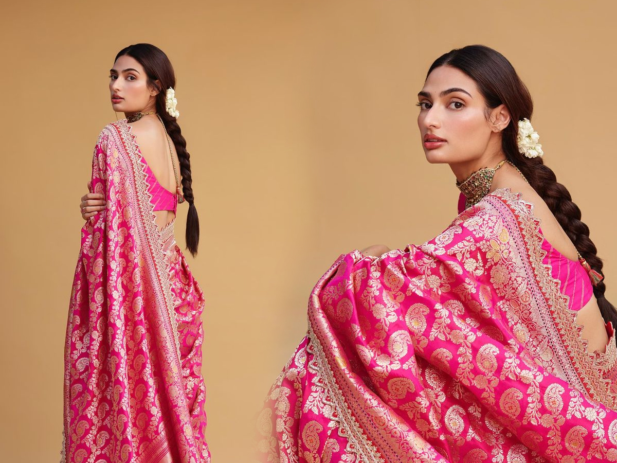 తాజాగా అందమైన పింక్ అండ్ గోల్డ్ శారీలో ఫోటోలను షేర్ చేసిన అతియా