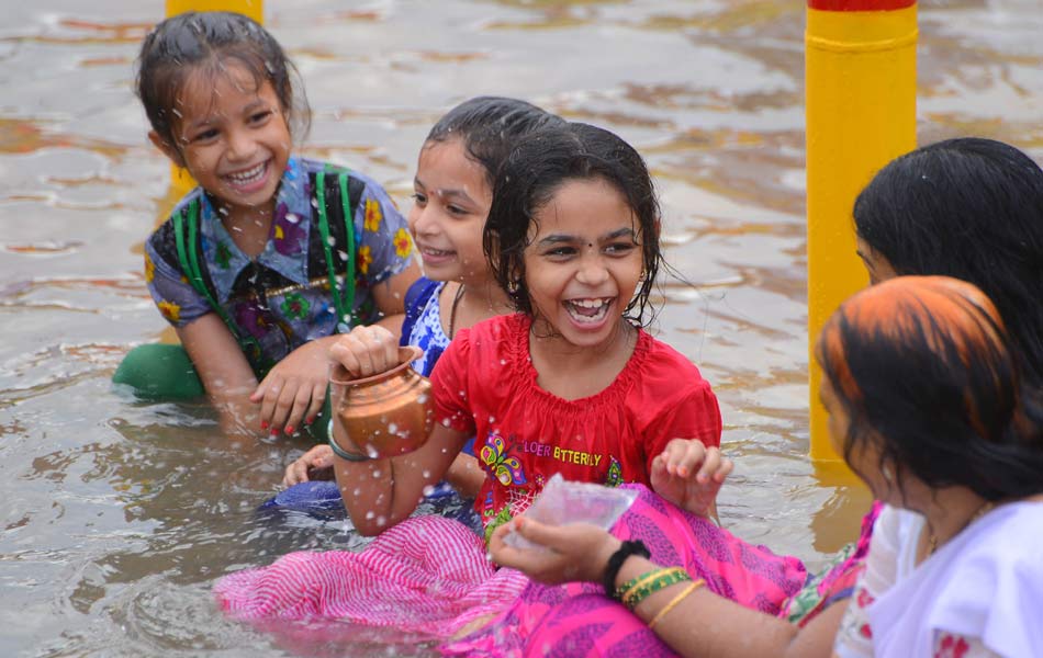 కృష్ణా పుష్కరాల్లో చిన్నారుల సందడి అంతా ఇంతా కాదు.. అల్లర్లు.. అలకలు.. ఉరుకులు.. పరుగులు.. అవి చూస్తూ అమ్మానాన్నల ఆనందం చెప్పనలవి కాదు. బుడుగులంతా నీళ్లలో కాలు మోపగా కృష్ణమ్మ వారికి లాల పోసినట్లు పరవశమొందారు. – ఫోటోలు: గుంటూరు డెస్క్, రూబెన్, రియాజ్‌