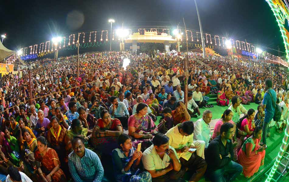 కృష్ణా పుష్కరాల్లో భాగంగా 11వ రోజు సోమవారం సాయంత్రం వేదపండితులు కృష్ణమ్మకు పుష్కర హారతినిచ్చారు. భక్తులు అధిక సంఖ్యలో విచ్చేసి ఈ మహోత్సవాన్ని వీక్షించారు. – ఫొటోలు: రూబెన్‌