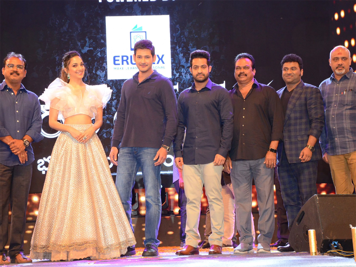 మహేశ్బాబు, కియారా అద్వానీ జంటగా కొరటాల శివ దర్శకత్వంలో తెరకెక్కిన చిత్రం ‘భరత్ అనే నేను’. డి. పార్వతి సమర్పణలో దానయ్య డీవీవీ నిర్మించిన ఈ సినిమా ఈ నెల 20న రిలీజవుతోంది. మహేష్ బాబు ముఖ్యమంత్రిగా నటిస్తున్న ఈ సినిమా ప్రీ రిలీజ్ ఈవెంట్లో యంగ్ టైగర్ ఎన్టీఆర్ ముఖ్యఅతిథిగా పాల్గొన్నారు.