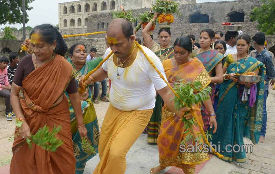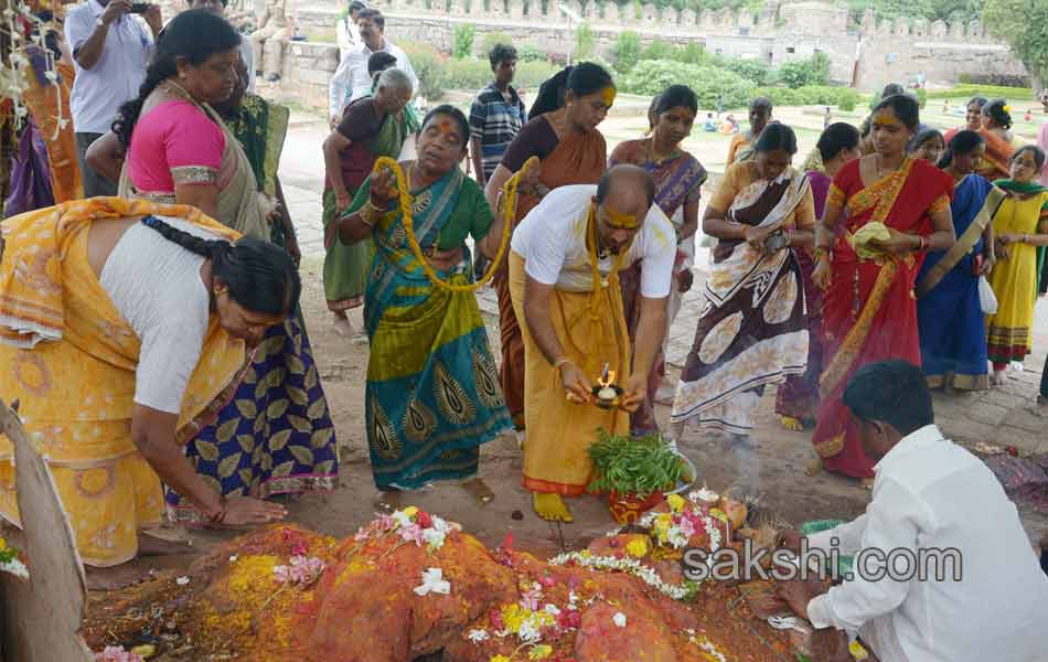 గోల్కొండ కోట భక్తులతో కిటకిటలాడింది. కోటలో కొలువుదీరిన శ్రీ జగదాంబిక అమ్మవారి బోనాల ఉత్సవాల సందర్భంగా గురువారం(23-07-2015) రెండవ పూజ అత్యంత భక్తి శ్రద్ధలతో జరిగింది. అమ్మవారి దర్శనానికి భక్తులు పెద్దఎత్తున తరలివచ్చారు. ‘అమ్మా.. చల్లంగ చూడ మ్మా..’అంటూ భక్తులు అమ్మవారికి మొక్కులు చెల్లించుకున్నారు. మరికొందరు వర్షాలు కురవాలంటూ ప్రత్యేక పూజలు నిర్వహించారు.