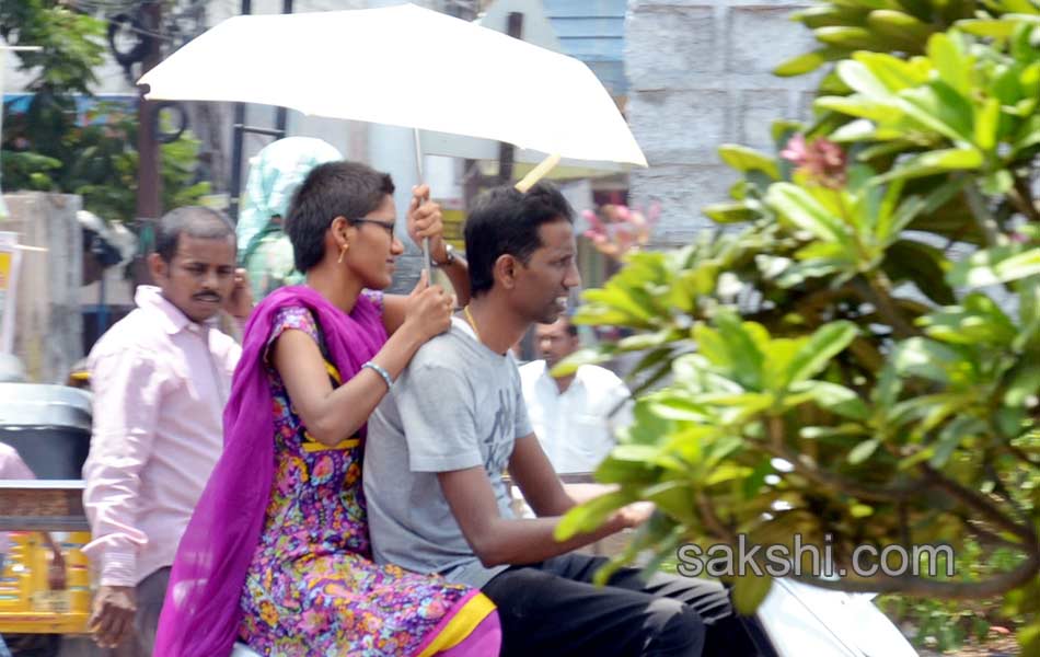 స్వల్పంగా తగ్గిన ఉష్ణోగ్రత భానుడి భగ భగలు శనివారం(23-05-2015) కొద్దిగా తగ్గుముఖం పట్టాయి. న‘గరం’.. నిప్పుల కొలిమి.. ఇంట్లోంచి బయటకు కాలు పెట్టాలంటే భయపడుతున్నారు నగర వాసులు. తప్పని పరిస్థితుల్లో బయటకు వెళ్లాల్సి ఉన్నవారు వివిధ ప్రత్యామ్నాయ మార్గాలను అన్వేషిస్తున్నారు. భానుడి ప్రతాపానికి మూగజీవాలూ విలవిల్లాడుతున్నాయి. వేడి గాలులకు తట్టుకోలేక కొన్ని నీళ్లల్లోంచి బయటకు రావడం లేదు. జూ సిబ్బంది నీళ్లు చల్లి వాటికి ఉపశమనం కల్పిస్తున్నారు.