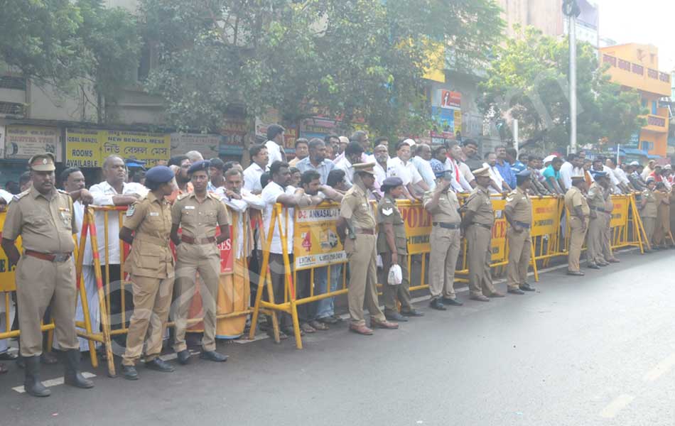 సీఎం జయలలిత ఆరోగ్యం తీవ్ర ఆందోళనకరంగా ఉండటం, ఆమె కన్నుమూశారంటూ వదంతులు రావడంతో చెన్నై నగరం స్తంభించిపోయింది. అమ్మ అభిమానుల ఆందోళనలు, ఉద్రిక్తతలతో అట్టుడికింది. ఎక్కడ చూసినా పోలీసుల నిఘానీడలో చెన్నై వాసులు బిక్కుబిక్కుమంటు గడుపుతున్నారు.