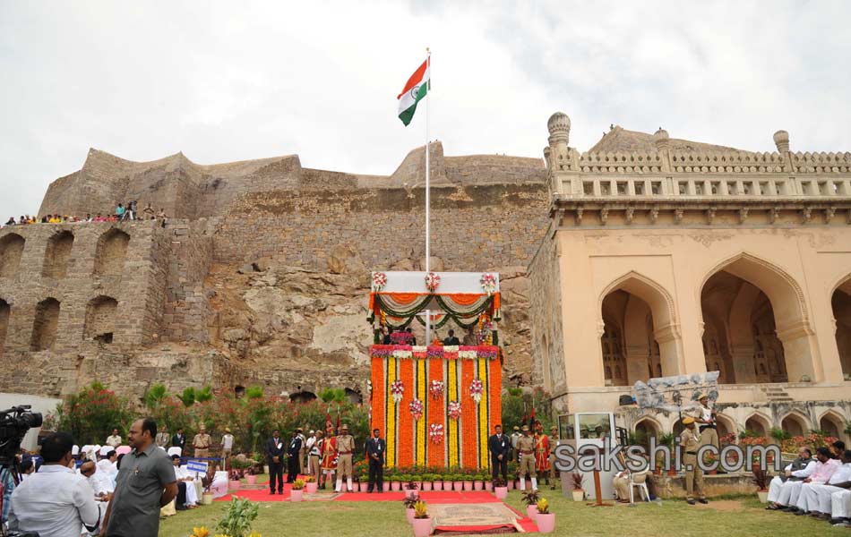 70వ స్వాతంత్య్ర దినోత్సవం సందర్భంగా సోమవారం ఉదయం చారిత్రక గోల్కొండ కోటపై సీఎం కేసీఆర్‌ జాతీయ జెండాను ఆవిష్కరించారు. అనంతరం ప్రసంగించారు. అభివృద్ధి నిరోధక శక్తులు ఎన్ని ఆటంకాలు కల్పించినా ప్రజాబలమే అండగా భావించి రాష్ట్ర ప్రభుత్వం స్థిరంగా పురోగమిస్తున్నదని కేసీఆర్‌ చెప్పారు.