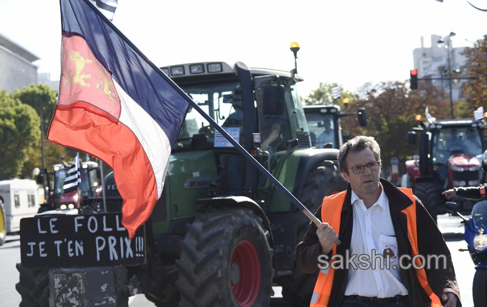 తమ పంటలకు మద్దతు ధర ప్రకటించాలంటూ రైతులు ట్రాక్టర్లతో నిరసన తెలిపారు. ఈ నేపథ్యంలో రైతులు గురువారం (03-09-2015) పారిస్లోని జాతీయ అసెంబ్లీకి ట్రాక్టర్లలో వెళ్లి నిరసన తెలిపారు. అన్ని విభాగాల్లో ధరలు ఉన్నాయని రైతులు విషయానికి వచ్చే సరికి ధరలు తగ్గిస్తున్నారని మండిపడ్డారు.