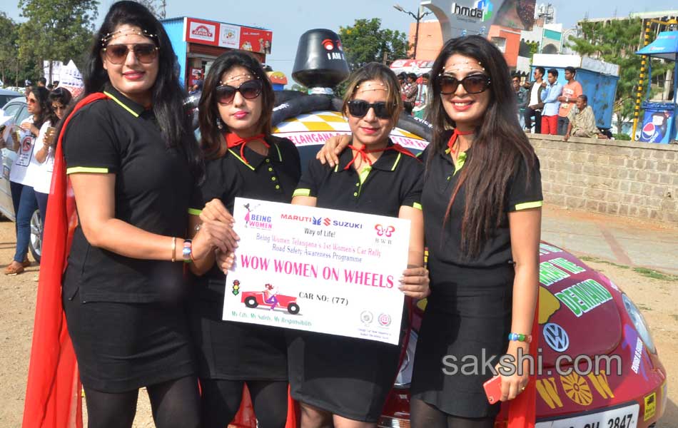 అమ్మాయిల హొయలు.. ఆకట్టుకునే కార్లు.. పురాతన వాహనాలు.. ఇలా నెక్లెస్‌రోడ్ ఆదివారం(02-08-2015) కళకళలాడింది. ‘నా సిటీ.. నా సేఫ్టీ.. నా బాధ్యత’ అనే నినాదంతో తెలంగాణలో తొలిసారి రోడ్డు భద్రతపై అవగాహన కల్పించేందుకు ఏర్పాటు చేసిన ‘ఉమెన్ కార్ ర్యాలీ’ని ఆదివారం ఉదయం రవాణాశాఖ మంత్రి మహేందర్‌రెడ్డి, హోంమంత్రి నాయిని నర్సింహారెడ్డి ప్రారంభించారు. మహిళా కార్ ర్యాలీలో భాగంగా పీపుల్స్ ప్లాజాలో షాదాన్ ఎడ్యుకేషన్ గ్రూప్ ఏర్పాటు చేసిన వింటేజ్ కార్ల షో ఆకట్టుకుంది. పాతకార్లు ఆకట్టుకున్నాయి. ర్యాలీలో పాల్గొనేందుకు వచ్చిన యువతులు, మహిళలు ఫ్యాషన్ డ్రస్సుల్లో అలరించారు. ‘మిస్ టీనేజ్ సదరన్ బ్రిటిష్ కొలంబియా’ అశ్విత ప్రత్యేక ఆకర్షణగా నిలిచారు. - ఖైరతాబాద్
