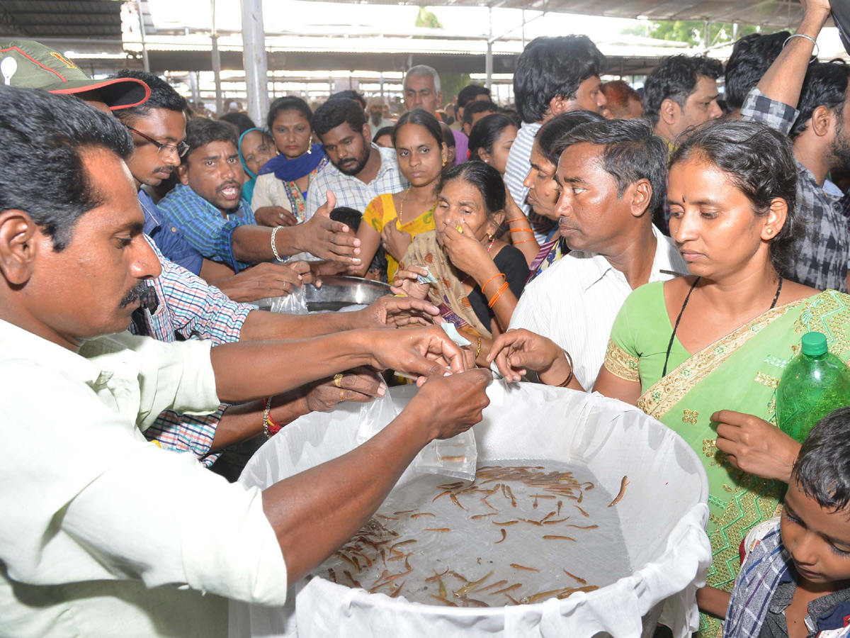 మృగశిరకార్తెను పురస్కరించుకుని బత్తినగౌడ్ సోదరుల ఆధ్వర్యంలో చేప ప్రసాదం పంపిణీ ప్రారంభమైంది. హైదరాబాద్లోని నాంపల్లి ఎగ్జిబిషన్ మైదానంలో శుక్రవారం ఉదయం తొమ్మిది గంటలకు ప్రారంభమైన పంపిణీ శనివారం ఉదయం తొమ్మిది గంటల వరకు కొనసాగనుంది.