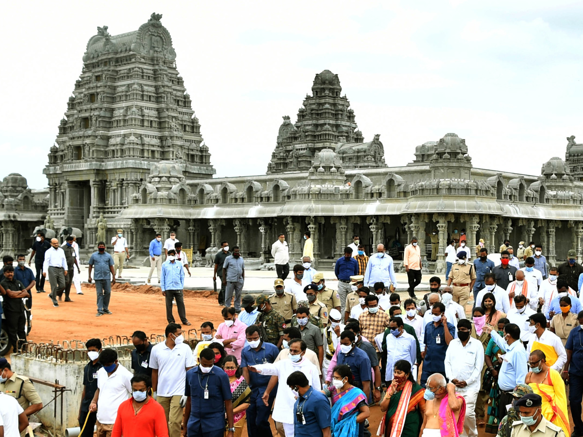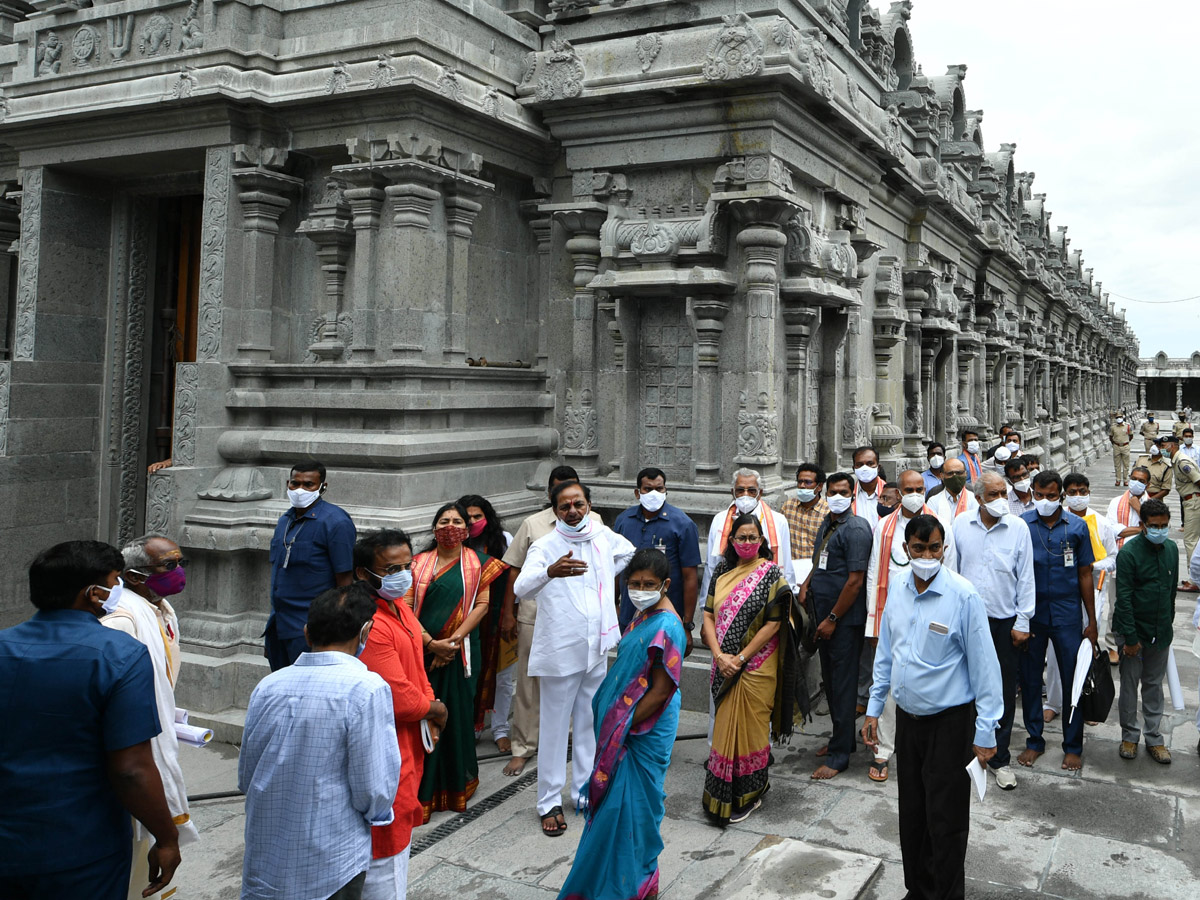 యాదాద్రి క్షేత్రంలో సీఎం కేసీఆర్ ఆదివారం 6 గంటల పాటు పర్యటించారు. ఆలయ అర్చకులు పూర్ణకుంభంతో స్వాగతం పలికి ఆశీర్వచనం ఇచ్చారు. అనం తరం సుమారు ఆరు గంటలపాటు కేసీఆర్ ఆలయ నిర్మాణ పనులను పరిశీలించారు.