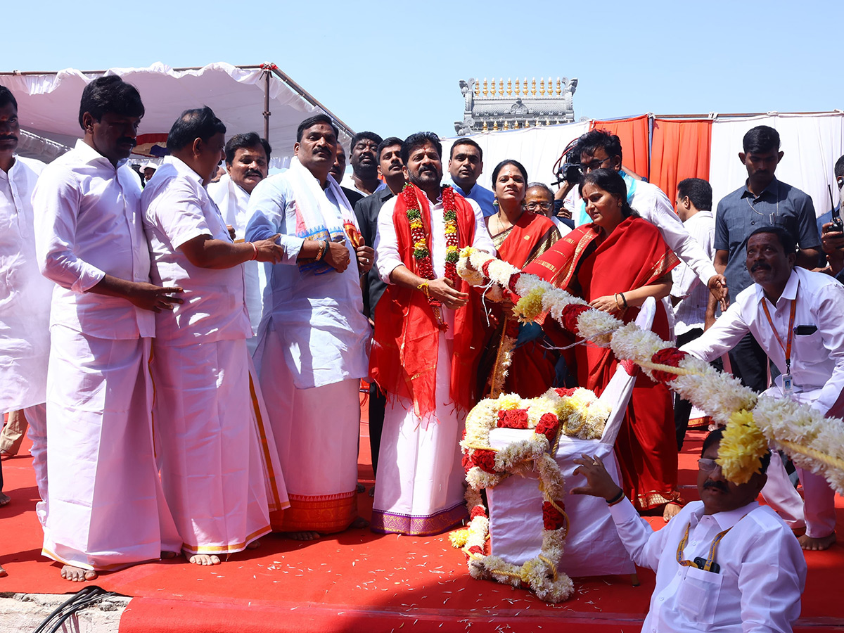 ఈ కార్యక్రమంలో సీఎం రేవంత్ రెడ్డి దంపతులు పాల్గొన్నారు. అనంతరం, ఆలయంలో జరిగిన ప్రత్యేక పూజా కార్యక్రమాల్లో పాల్గొన్నారు.