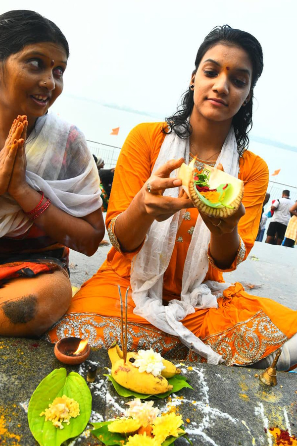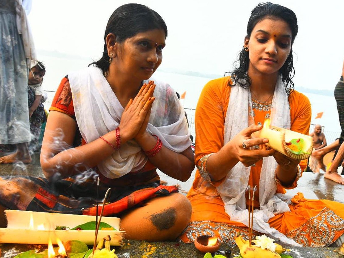 కార్తీక మాసం తొలి సోమవారం సందర్భంగా విజయవాడ పున్నమి ఘాటు వద్ద ప్రత్యేక పూజలు పాల్గొన్న భక్తులు, నదిలో కార్తీకదీపం వదులుతున్న భక్తులు