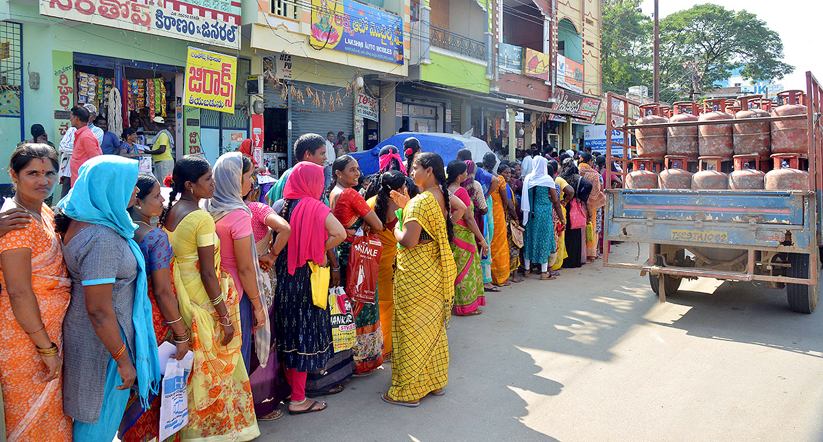 హైదరాబాద్సహా అన్ని జిల్లాల్లో పనులన్నీ పక్కనబెట్టి గ్యాస్ పాస్బుక్కు, ఆధార్ కార్డులతో గంటల తరబడి లైన్లలో నిల్చుంటున్నారు.