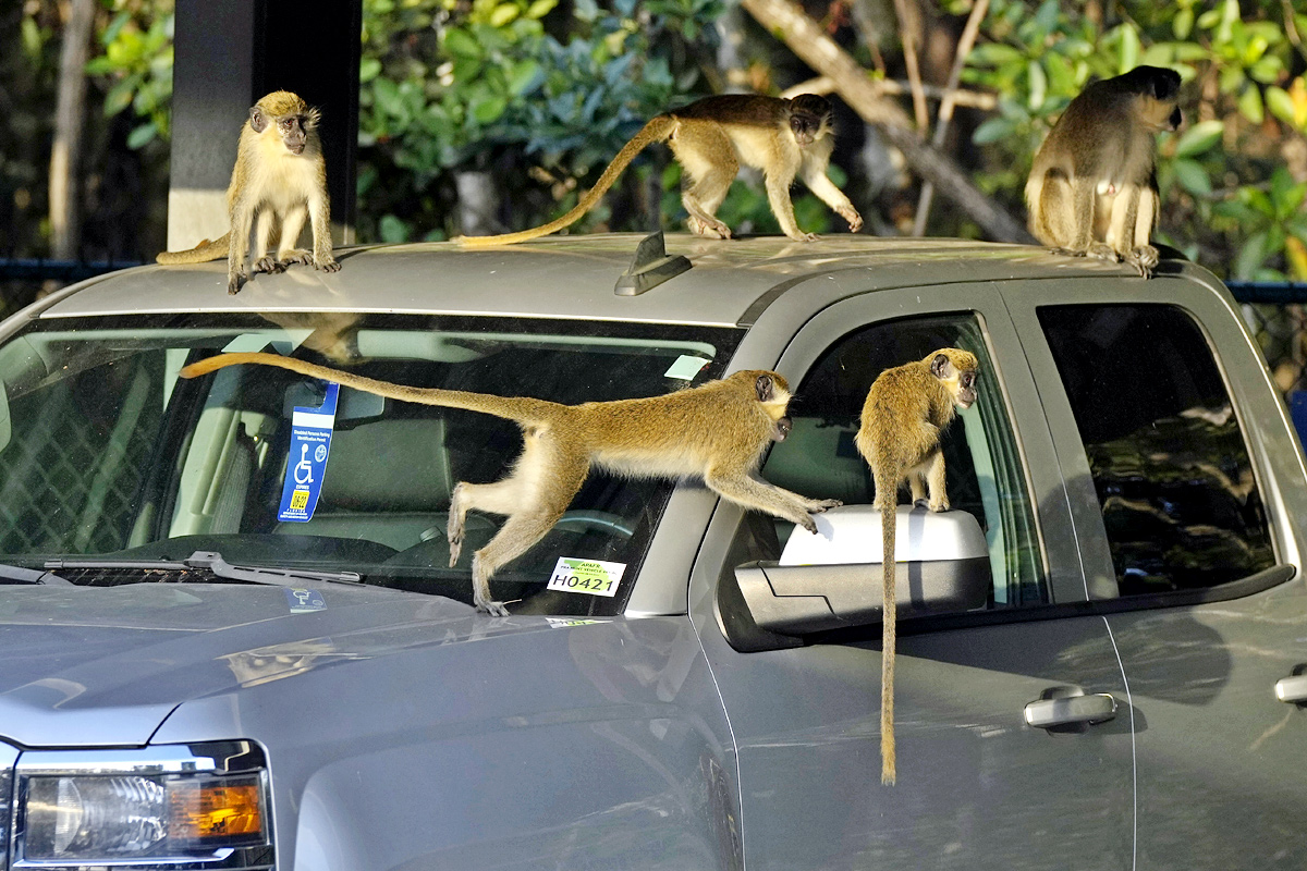 ఫ్లోరిడా ఎయిర్పోర్ట్ దగ్గర వానరాలు సందడి చేశాయి. vervet కోతులు పార్కింగ్ సెక్షన్లో కలియదిరగ్గా.. ఆ సందడి చూసేందుకు జనాలు ఎగబడ్డారు.