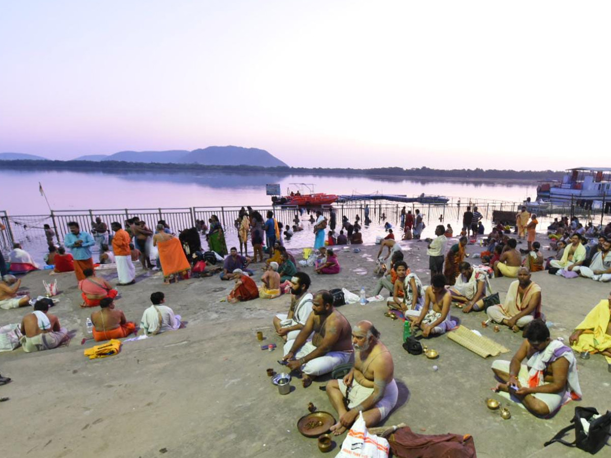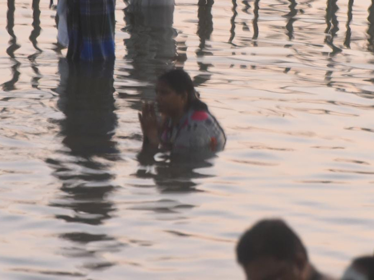 విజయవాడ నగరంలో కృష్ణానది నదీ తీరాన సూర్యగ్రహణం వీక్షిస్తున్న నగరవాసులు. అనంతరం పుణ్యస్నానాలు ఆచరించారు.