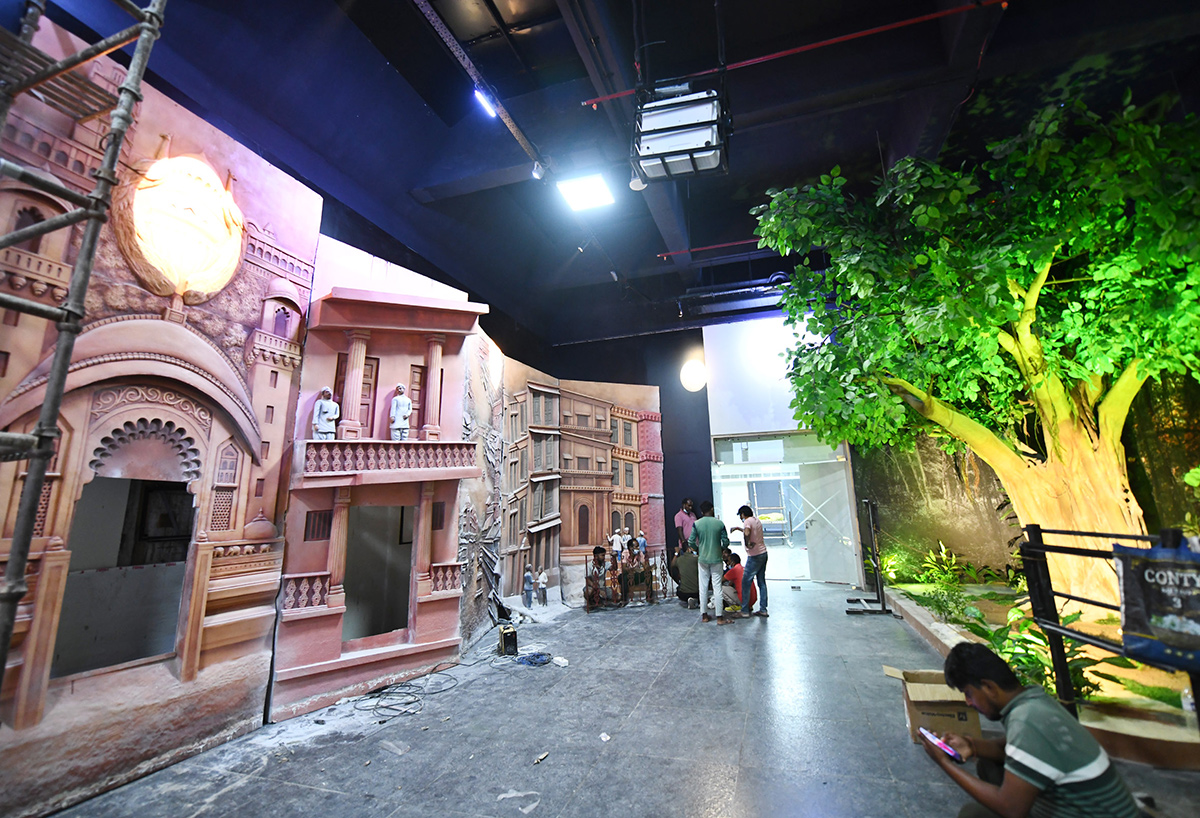 గ్రౌండ్ ఫ్లోర్లో నాలుగు హాళ్లు ఉంటాయి. ఒక్కో హాలు 4,000 చదరపు అడుగుల విస్తీర్ణంలో ఉంటుంది. ఇందులో ఓ సినిమా హాలు, మిగిలిన మూడు హాళ్లలో ఆయన చరిత్ర తెలిపే డిజిటల్ మ్యూజియం ఉంటుంది