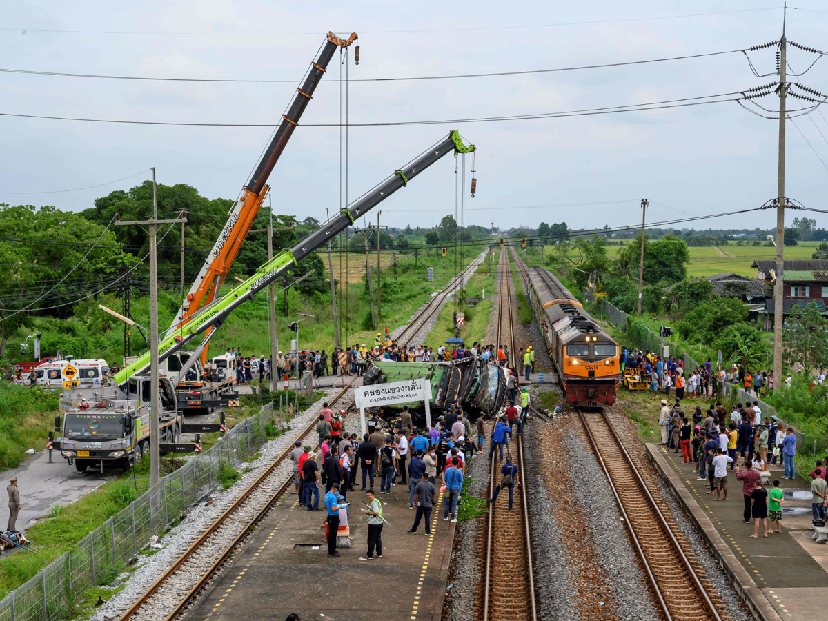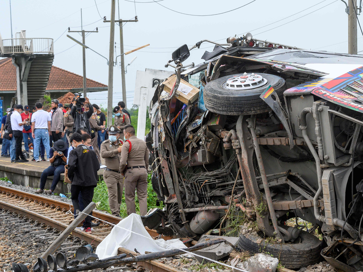 ట్రావెల్ బస్సును ఢీకొన్న రైలు ఫొటోలు